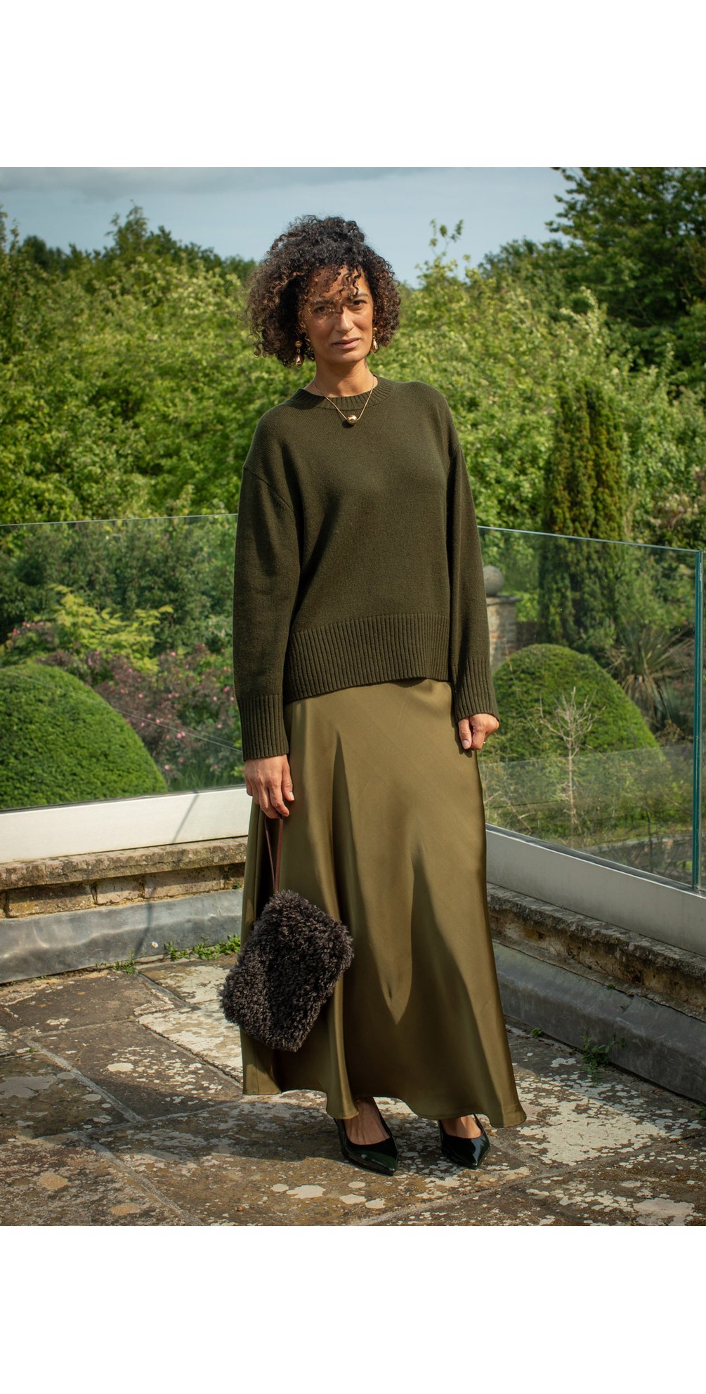 The Gina Skirt is a beautifully crafted satin piece with classic, enduring style. Cut on the bias for a naturally flattering fit, it drapes gracefully and moves effortlessly with you. Featuring an elasticated waistband for all-day comfort, it’s the perfect skirt to take you seamlessly from day to evening. Style with A knit for an easy-going fit or a waistcoat for an evening look.