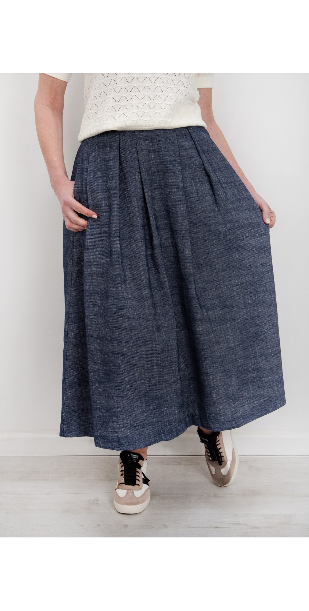 Effortlessly timeless with a modern twist, the Chalk Gloria Skirt brings refined ease to your everyday wardrobe. Cut in a mid-length silhouette with a flattering A-line shape and subtle panel detailing, it drapes beautifully and adds graceful movement to every step. Perfect for pairing with tees and knitwear for relaxed daytime styling or a blouse and boots for a polished look, this versatile skirt is a wardrobe staple with effortless appeal.