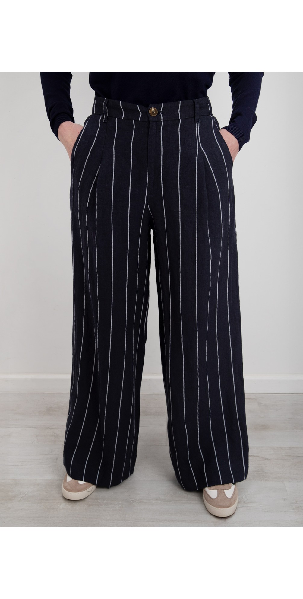 Effortlessly elevated yet relaxed in feel, the Chalk Jasmine Stripe Trouser is a versatile wardrobe essential that pairs polished tailoring with easy-wear comfort. Cut in a straight-leg silhouette with a clean waistband and subtle stripe pattern, these trousers offer a flattering, elongating line that works beautifully with blouses, tees or knitwear. The luxe-feel fabric and refined finish make them ideal for everyday styling, smart-casual occasions or polished weekend looks