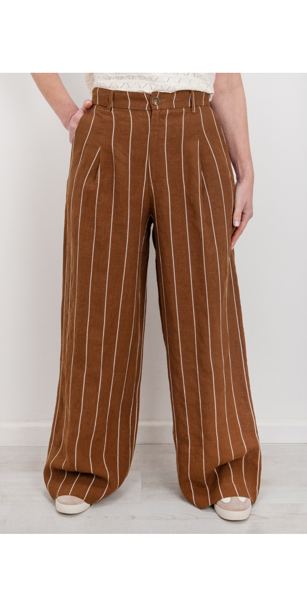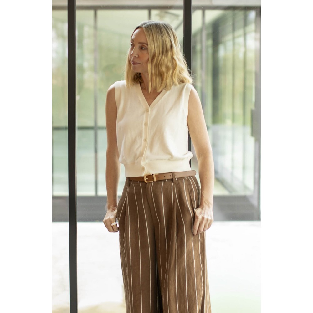Effortlessly elevated yet relaxed in feel, the Chalk Jasmine Stripe Trouser is a versatile wardrobe essential that pairs polished tailoring with easy-wear comfort. Cut in a straight-leg silhouette with a clean waistband and subtle stripe pattern, these trousers offer a flattering, elongating line that works beautifully with blouses, tees or knitwear. The luxe-feel fabric and refined finish make them ideal for everyday styling, smart-casual occasions or polished weekend looks