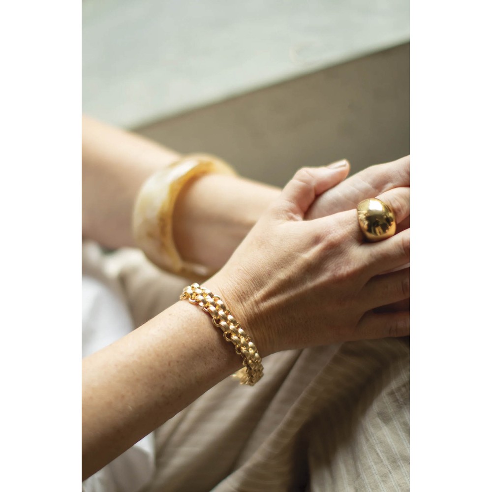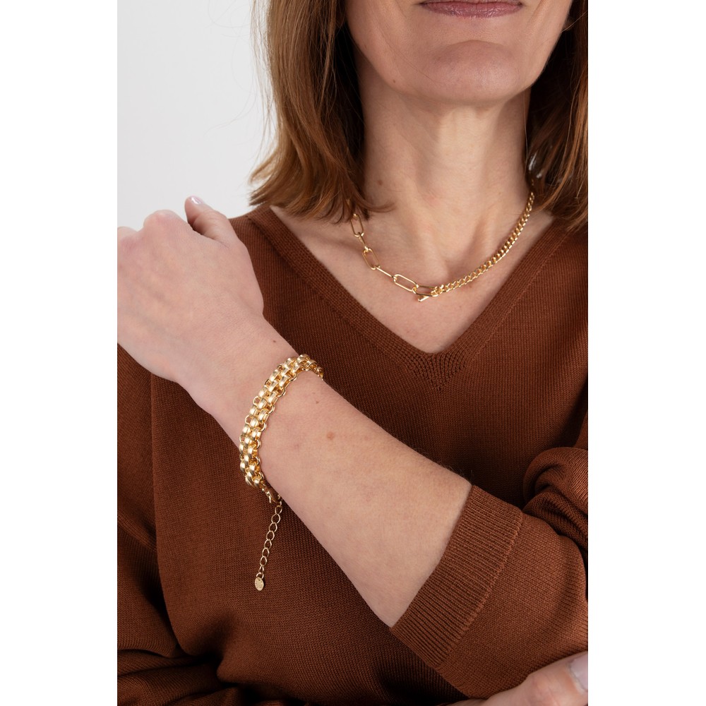 Add refined sparkle to your wrist with the Mesh Chain Bracelet in gold. Featuring a sleek mesh-style chain that catches the light with subtle movement, this bracelet balances modern sophistication with everyday wearability. Wear it alone for minimalist polish or layer with other bracelets for a curated look — perfect for both casual outfits and elevated evening styling.