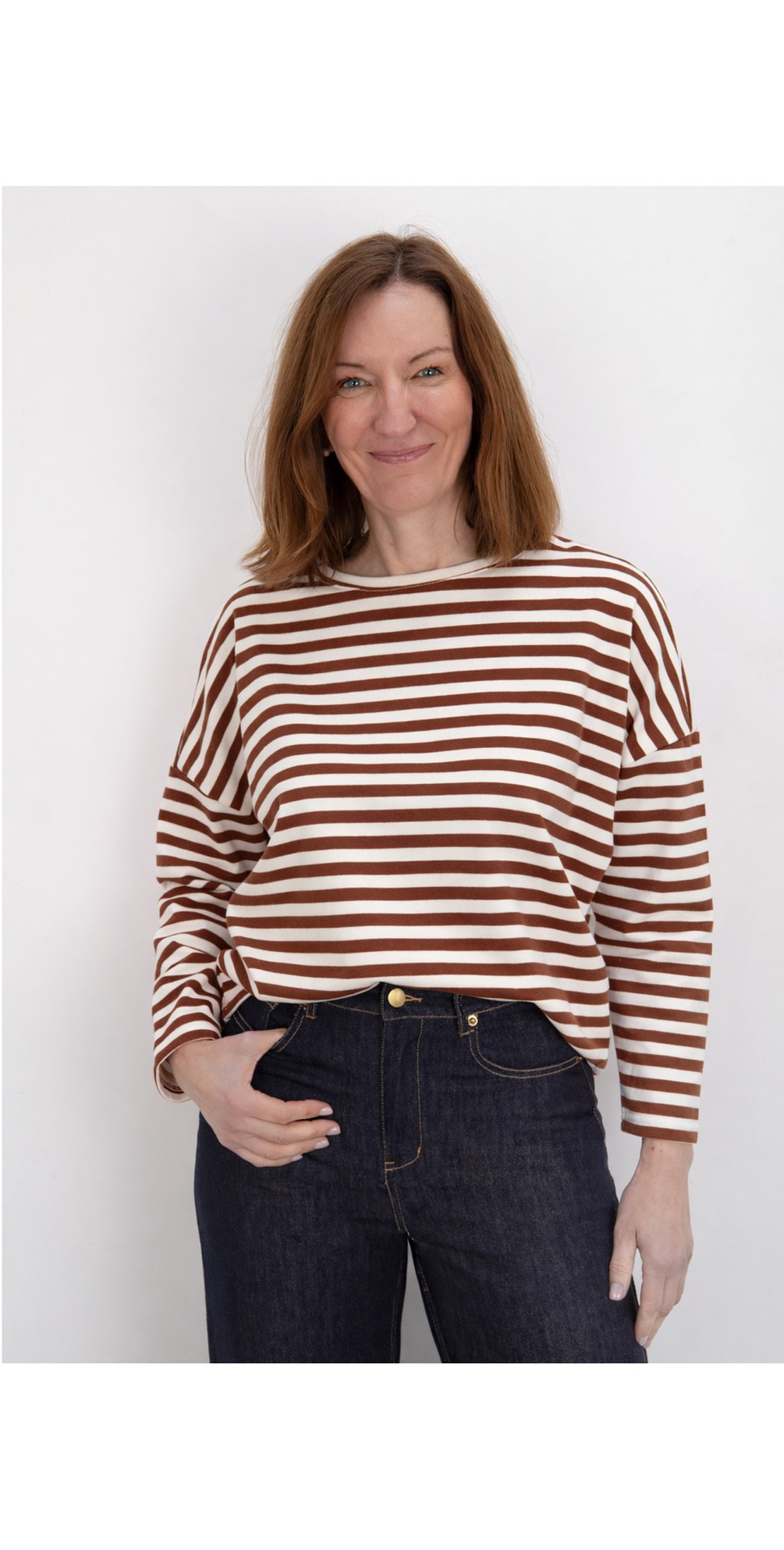 The Chalk Rebecca Relaxed Stripe Top is a timeless wardrobe staple, crafted from a soft cotton-blend loop-back fabric for all-day comfort. Designed with a relaxed boxy fit, this long-sleeve top offers an effortless silhouette that’s easy to wear and easy to style. Featuring a classic round neckline, the Rebecca Top is perfect for everyday styling, this versatile striped top pairs beautifully with jeans, tailored trousers, or layered under knitwear for a casual yet polished look.