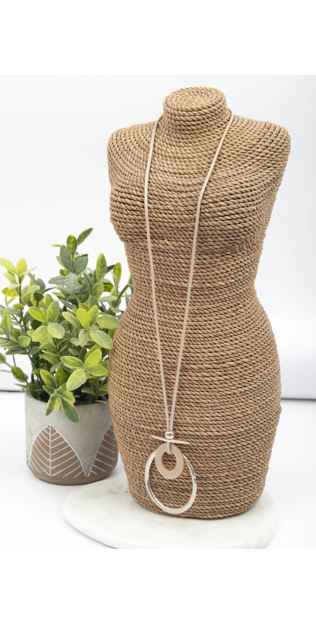 Add a contemporary finishing touch to your outfit with the Circular Pendant Necklace by Eliza Gracious. Designed with a rope-style necklace and a large circular pendant, this statement piece brings modern texture and effortless style to any look. Complete with a chain and clasp fastening, it is perfect for both everyday wear and occasion styling, making it a versatile addition to your jewellery collection.