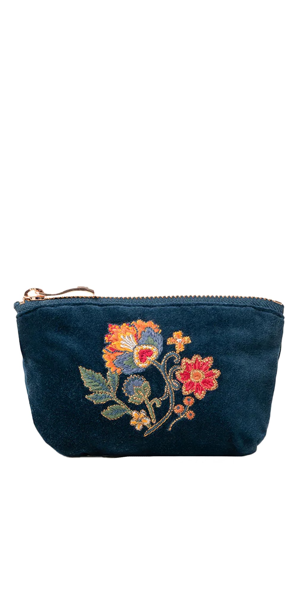 Elizabeth Scarlett Botanical Garden Ink Blue Velvet Coin Purse