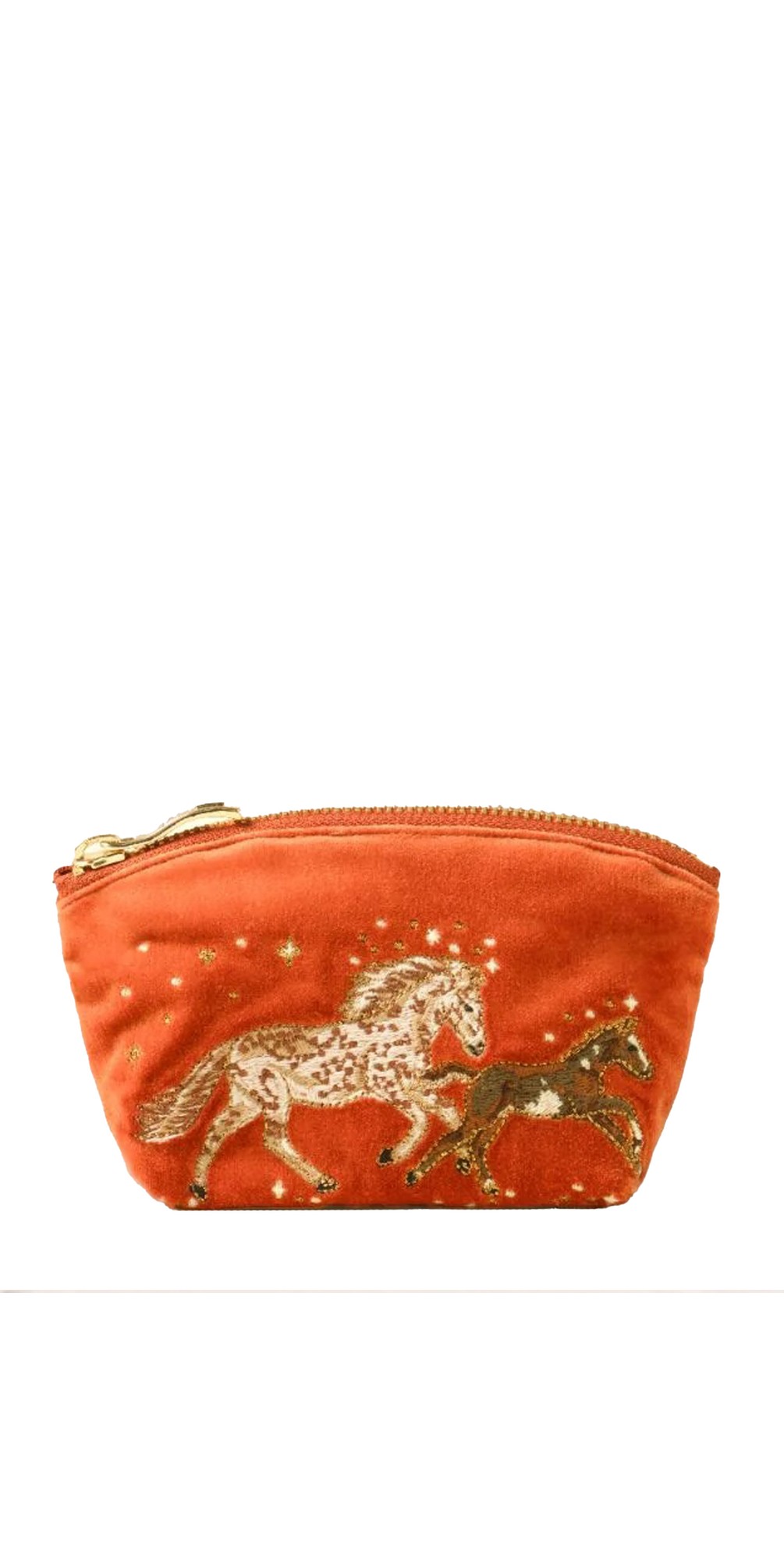 Elizabeth Scarlett Celestial Wild Horses Terracotta Velvet Coin Purse