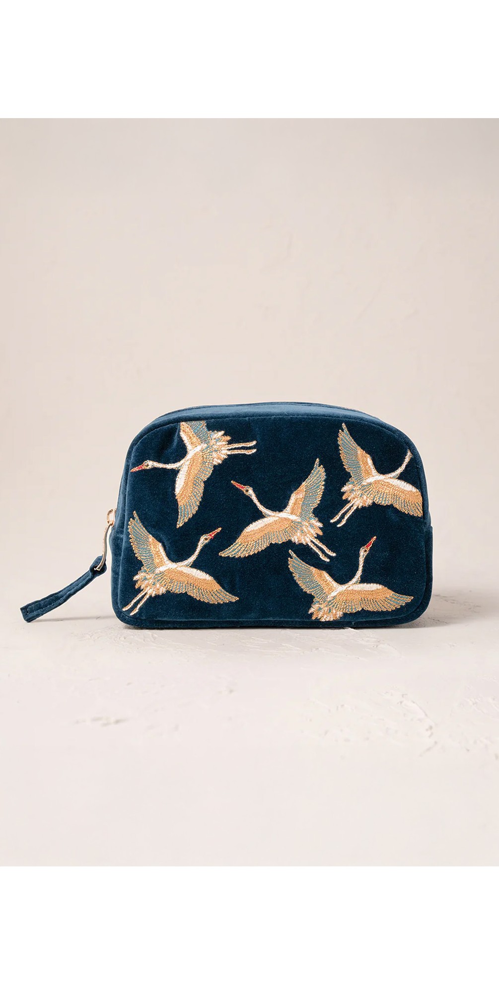 Elizabeth Scarlett Cranes Velvet Makeup Bag