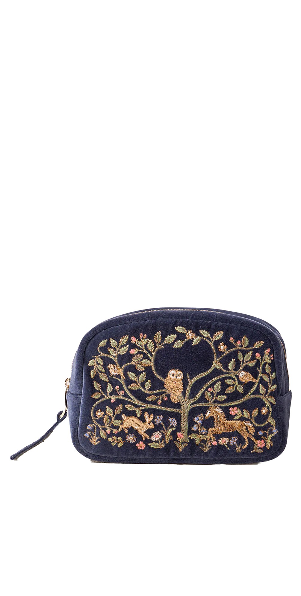 Elizabeth Scarlett Tree Of Life Indigo Velvet Makeup Bag