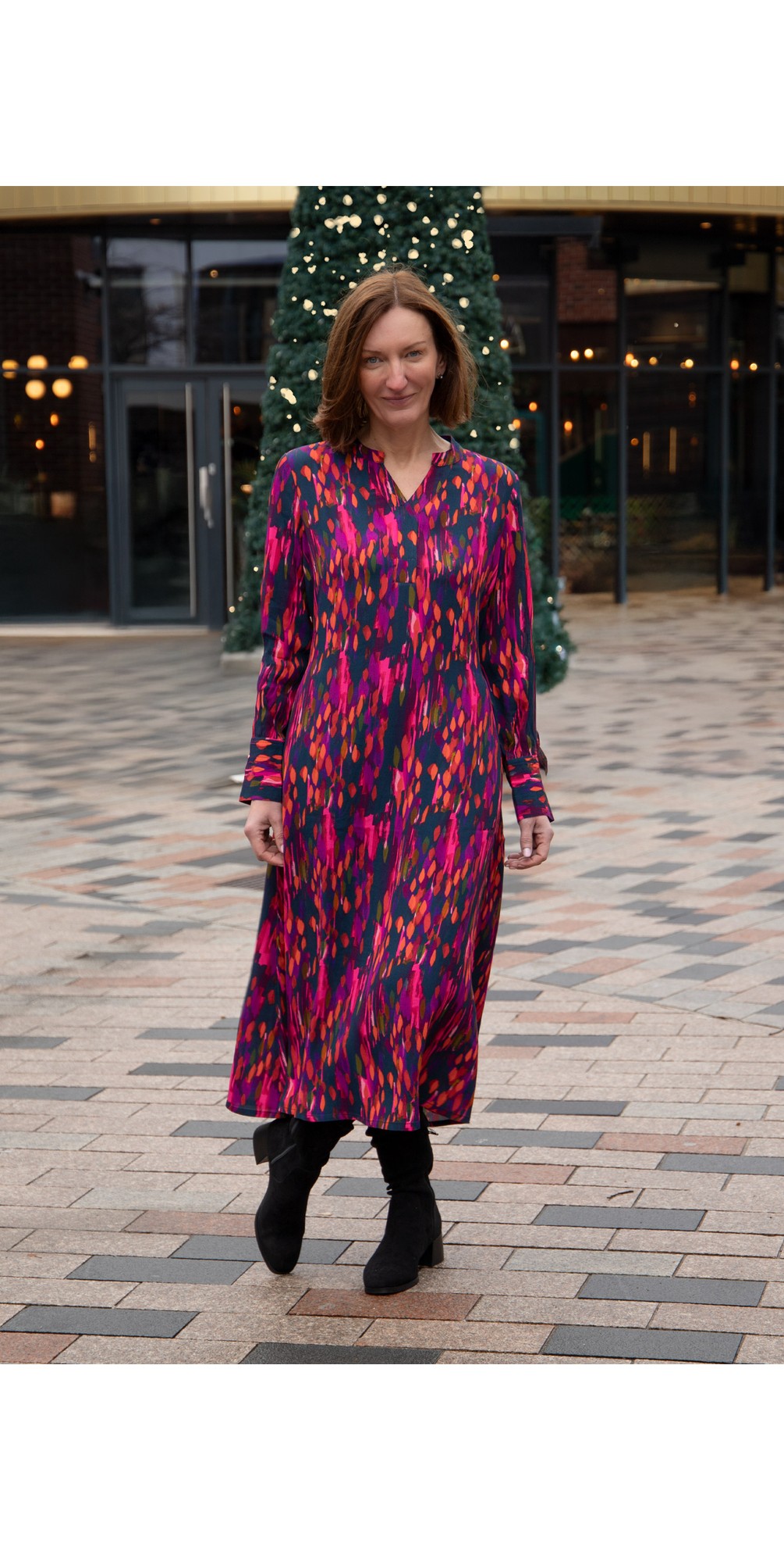 If you're searching for the perfect printed dress this season, look no further than Foil's Cast A Spell Dress. Available in two eye-catching prints, this dress can easily be dressed up or down to suit any occasion. It features a flattering round neckline with a V-insert, full-length sleeves, and a matching tie belt that allows you to define your waist beautifully.