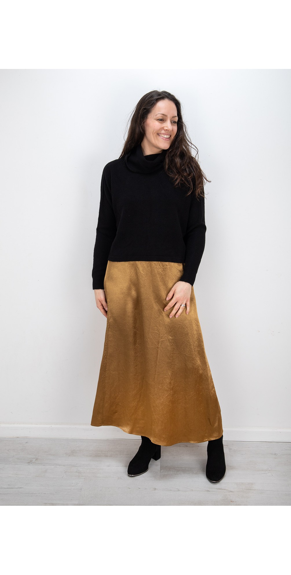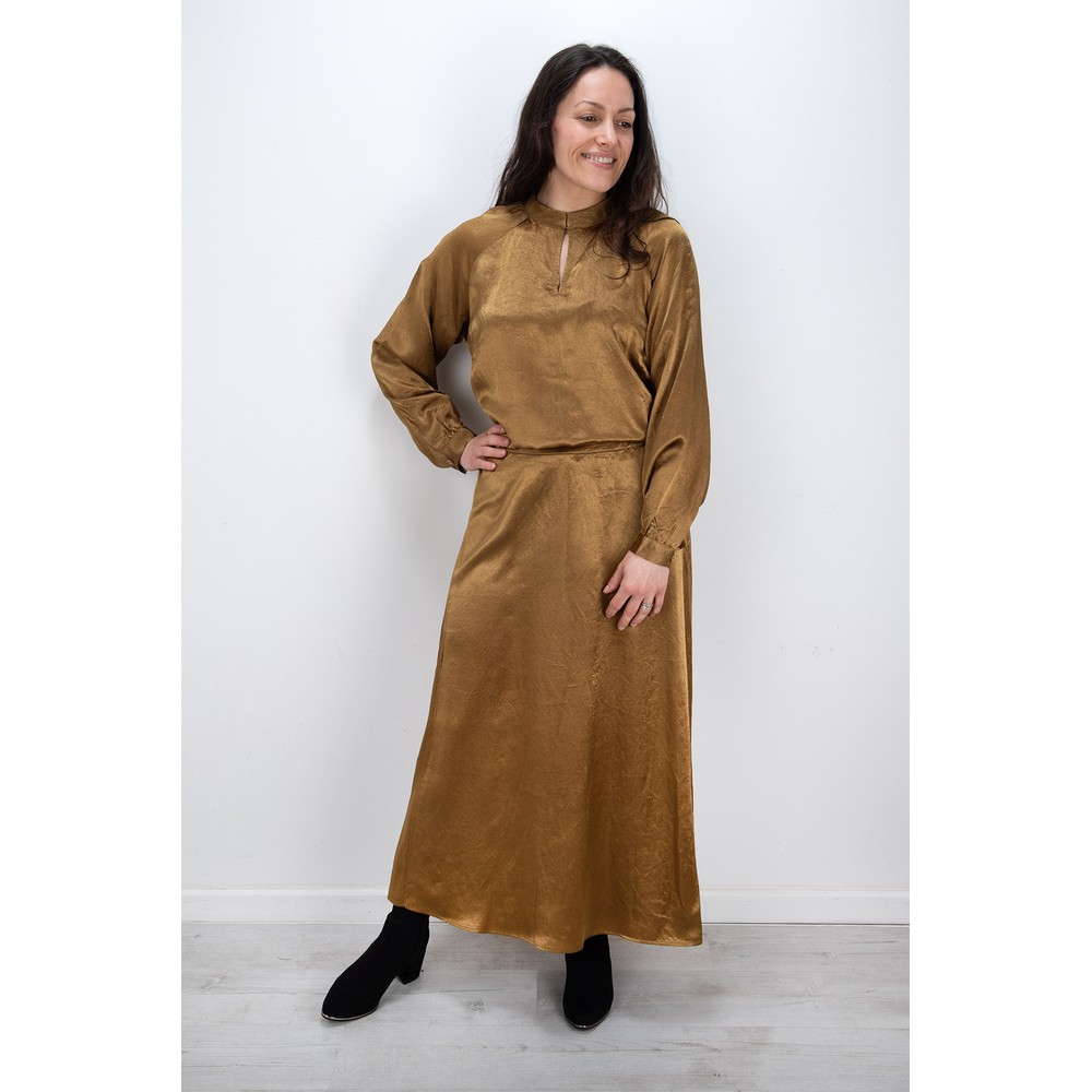 Foil's crackin' set skirt is a beautiful maxi-length lightweight skirt, perfect for evening occasions in the colder weather. The golden metallic colour will look perfect with a black or cream knit and pop on some boots to finish off the look.