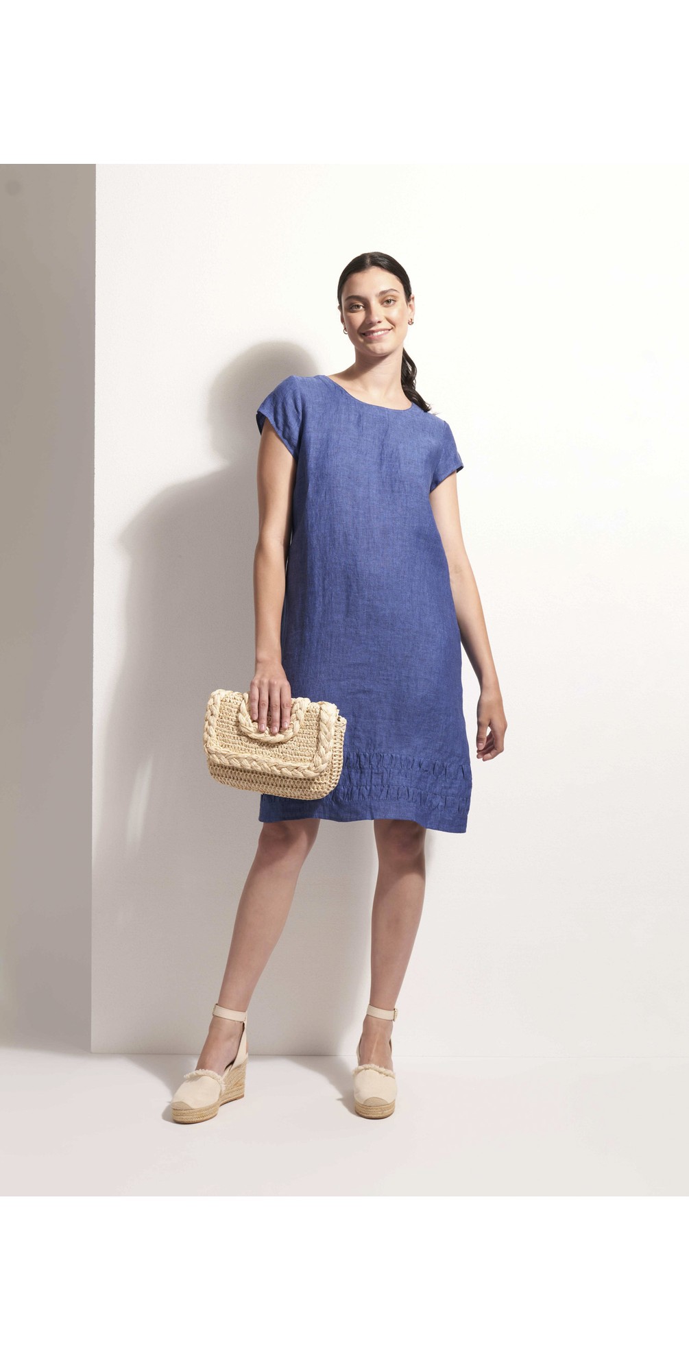 Made from lightweight, breathable fabric, the dress feels soft and comfortable while offering a flattering, easy-to-wear fit. It features a classic round neckline for a clean, versatile look, while short sleeves provide comfortable coverage for all-day wear. The silhouette is gently shaped for a flattering finish, while a frill hem at the bottom adds subtle movement and a playful touch. Falling to a knee-length finish, the dress is completed with a zip closure at the back for a neat and secure fit. This versatile piece pairs effortlessly with sandals or trainers for an easy daytime look.