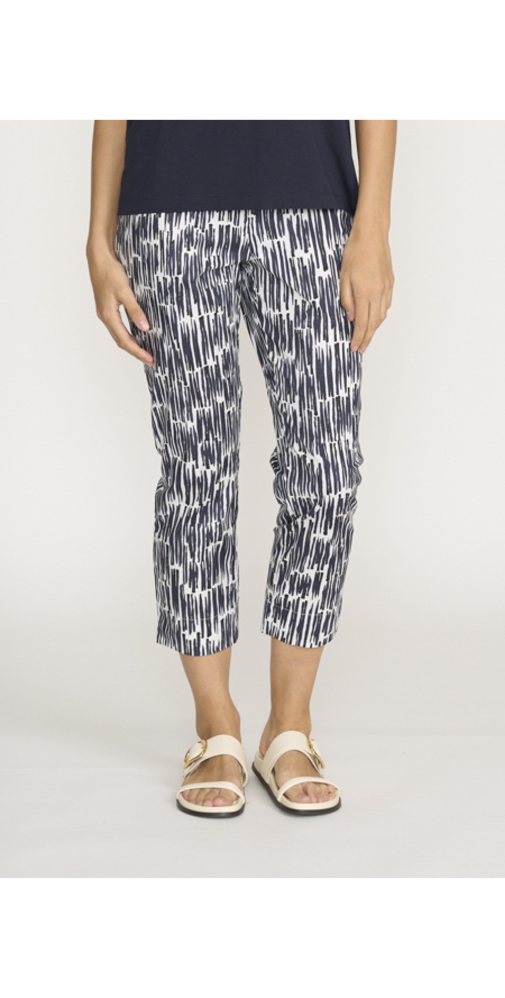 Foil's best-selling Fuss Free Taper Capri Trapeze Print Trousers are the perfect foundation for any look, we love the print and think they look great with tonal linen or lightweight knits. Featuring a mid-rise and elasticated waistband this lightweight design is super comfy, versatile and easy to wear, just simply pull them on and go!