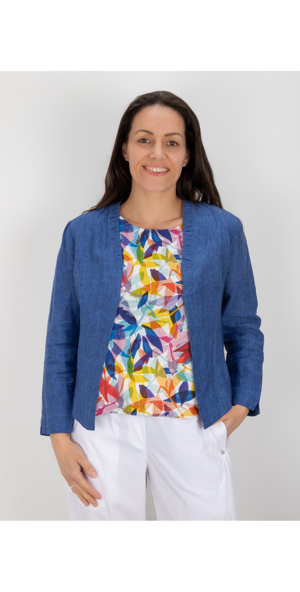 Discover the perfect blend of style and comfort with Foil's Gather Together Linen Jacket, an essential cover-up for those crisp days and evenings. This chic cropped jacket features a delicate V-neckline and a breezy open front, fastened with a single hook that adds an elegant touch. The bracelet-length sleeves give it a refined look, perfect for displaying your favourite accessories. We love the playful pleat detailing at the hem adding a stylish yet fun twist to any outfit. A versatile jacket that will look great teamed with everything from dresses to jeans