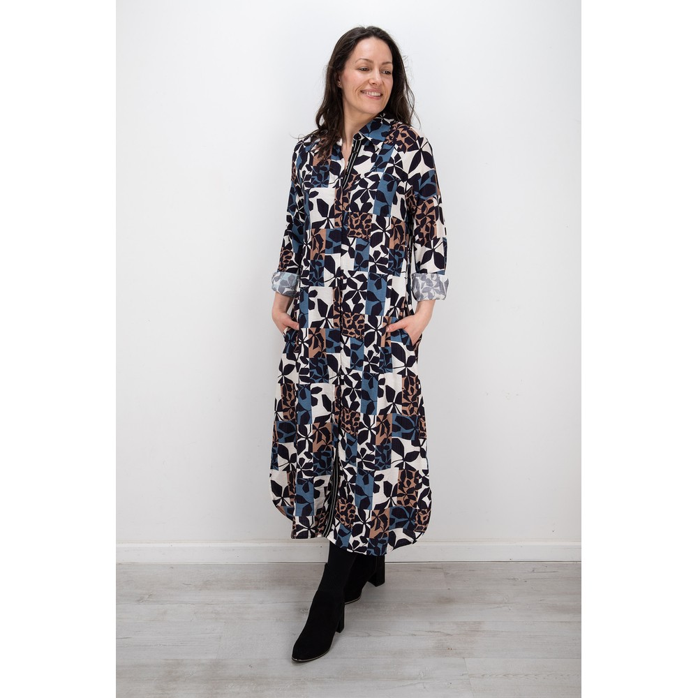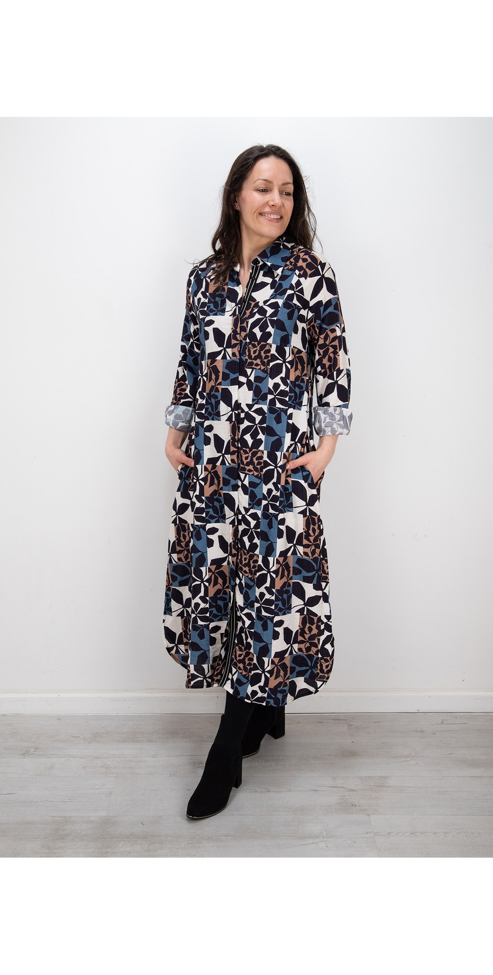 Foil's On The Strip Shirt Dress showcases a distinctive graphic leaf print in a beautiful combination of blues and tan. It features a collar, a button front fastening, concealed side pockets, and a matching tie belt at the waist. Style yours with trainers and layer it with a cropped knit on cooler days.