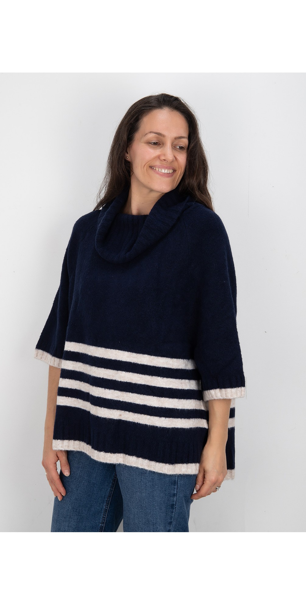 Indulge in luxury with this super soft knit from Foil's latest collection. The Plus One Popover, featuring a classic navy and oat palette, is a fantastic addition to your casual wardrobe. It includes a loose roll neck, three-quarter-length raglan sleeves, and a striped pattern. This Foil Knit is finished with playful buttons along the back and split detailing, enhancing its relaxed boxy silhouette. Style it with a tonal top and jeans for an effortlessly layered look this season.