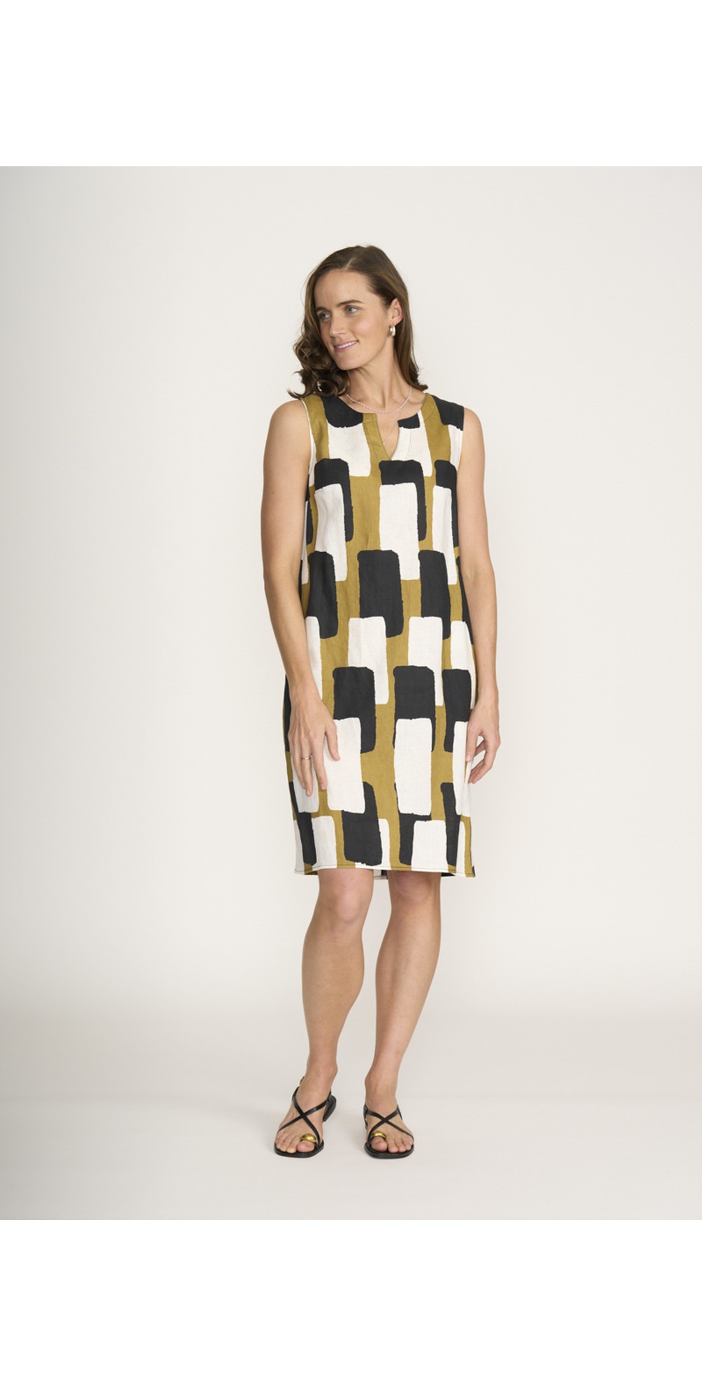 Crafted from breathable linen, the dress offers lightweight comfort and natural texture. The sleeveless cut keeps the look fresh and versatile, while a discreet zip fastening ensures a neat, streamlined fit. Practical side pockets add everyday functionality without compromising on style.