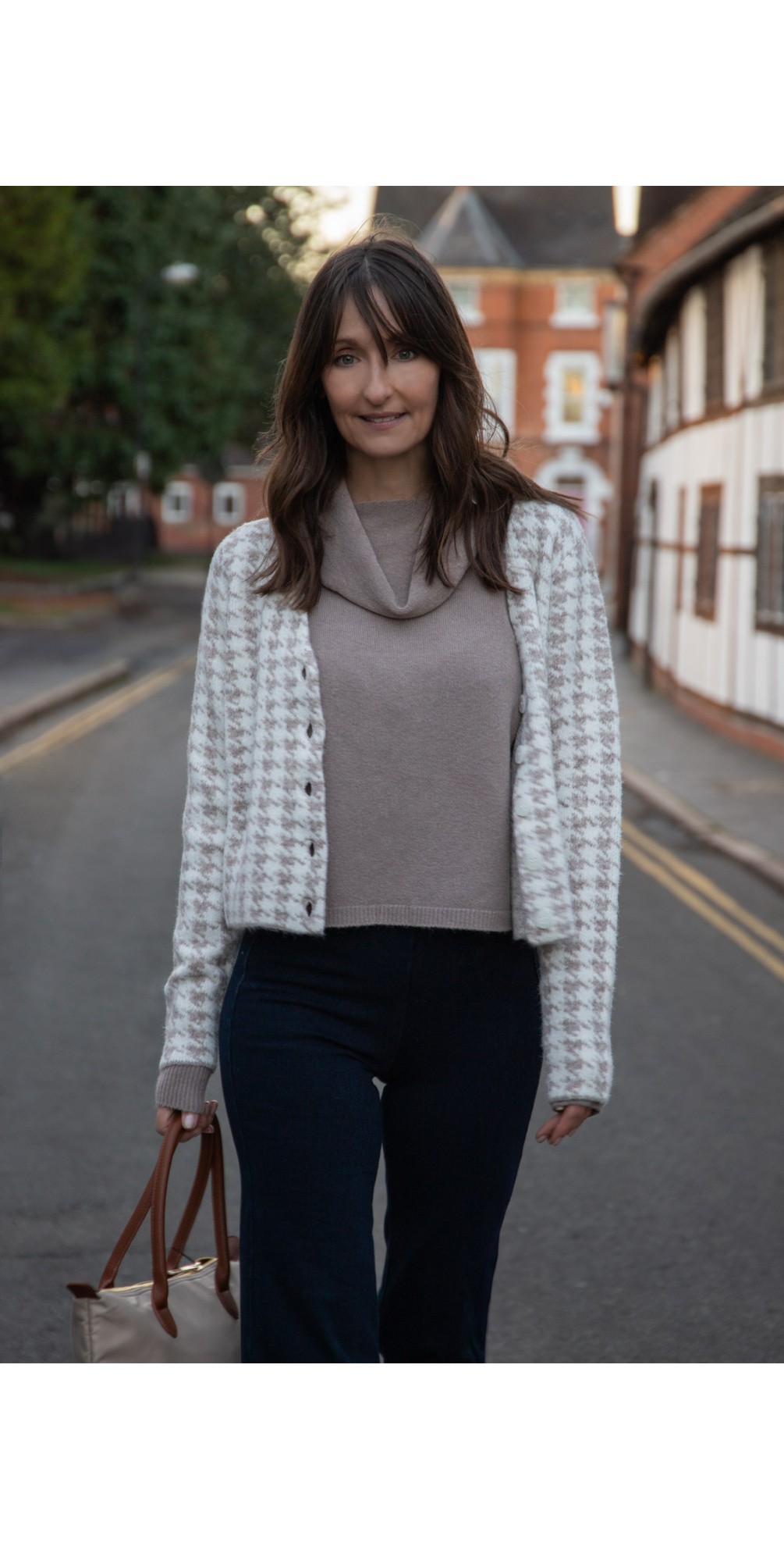 Foil Unleashed Oat Dogtooth Boxy Cardigan