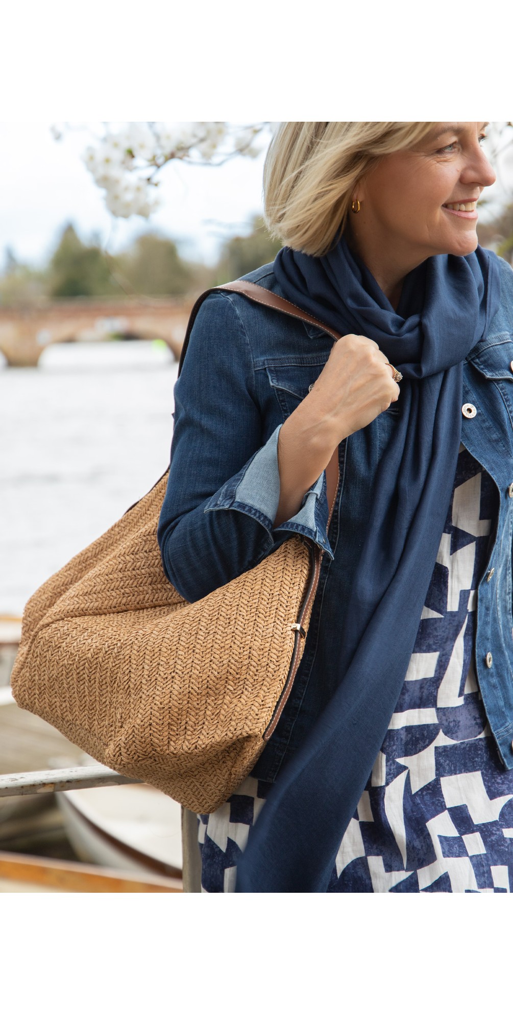 The Aruba Handbag from Gemini Label Accessories is crafted from natural raffia, creating a relaxed textured finish that complements seasonal outfits beautifully. Designed with a tan leather-style shoulder strap, it offers comfortable wear while adding a classic contrast to the natural woven body. Raffia bags are popular summer accessories thanks to their lightweight feel and natural woven texture, making them ideal for warmer weather styling. Versatile and easy to style, this neutral raffia handbag pairs effortlessly with everything from linen outfits and denim to breezy summer dresses, making it the perfect accessory for everyday outings or holiday wardrobes.
