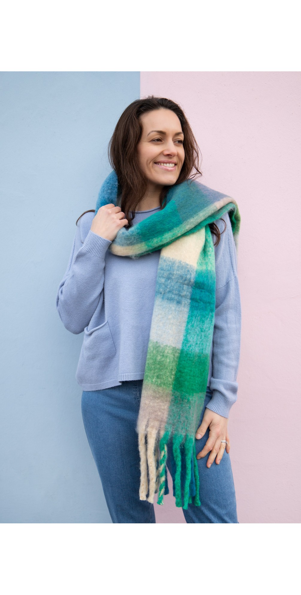Wrap yourself in timeless style with the Gemini Label Accessories Tartan Scarf — a soft, versatile accessory designed to elevate everyday outfits with effortless charm. Featuring a classic green tartan design in tonal hues and finished with gently frayed edges, this scarf offers generous length and drape, making it perfect to wrap, loop, or let fall loosely around the neck. Comfortable and easy to wear, it pairs beautifully with coats, knitwear or casual tops for both relaxed and refined looks — a stylish staple for all seasons.