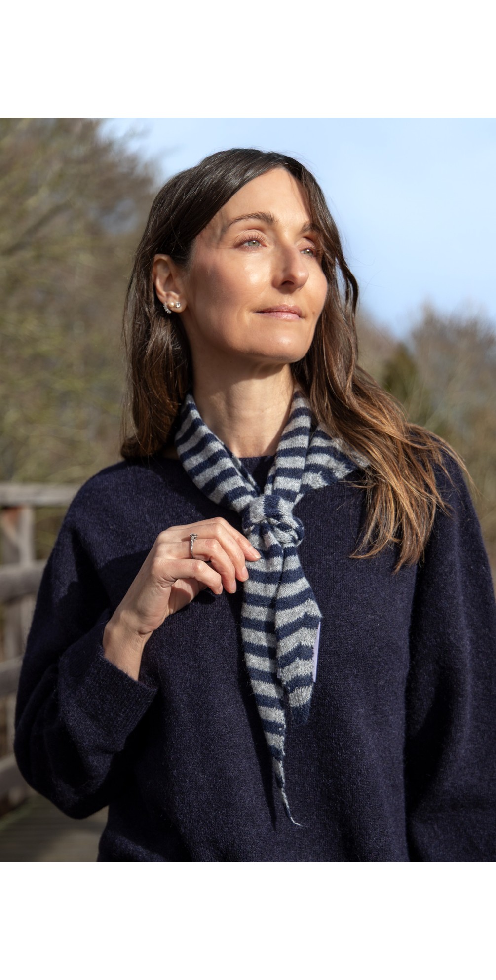 Gemini Label Accessories Triangle Neck Navy Stripe Supersoft Wool Scarf