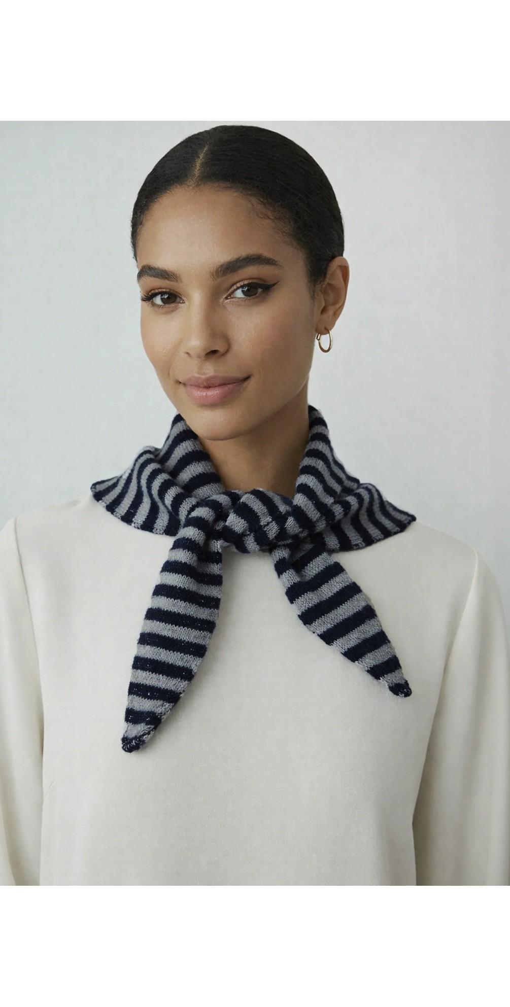Gemini Label Accessories Triangle Neck Navy Stripe Wool Scarf