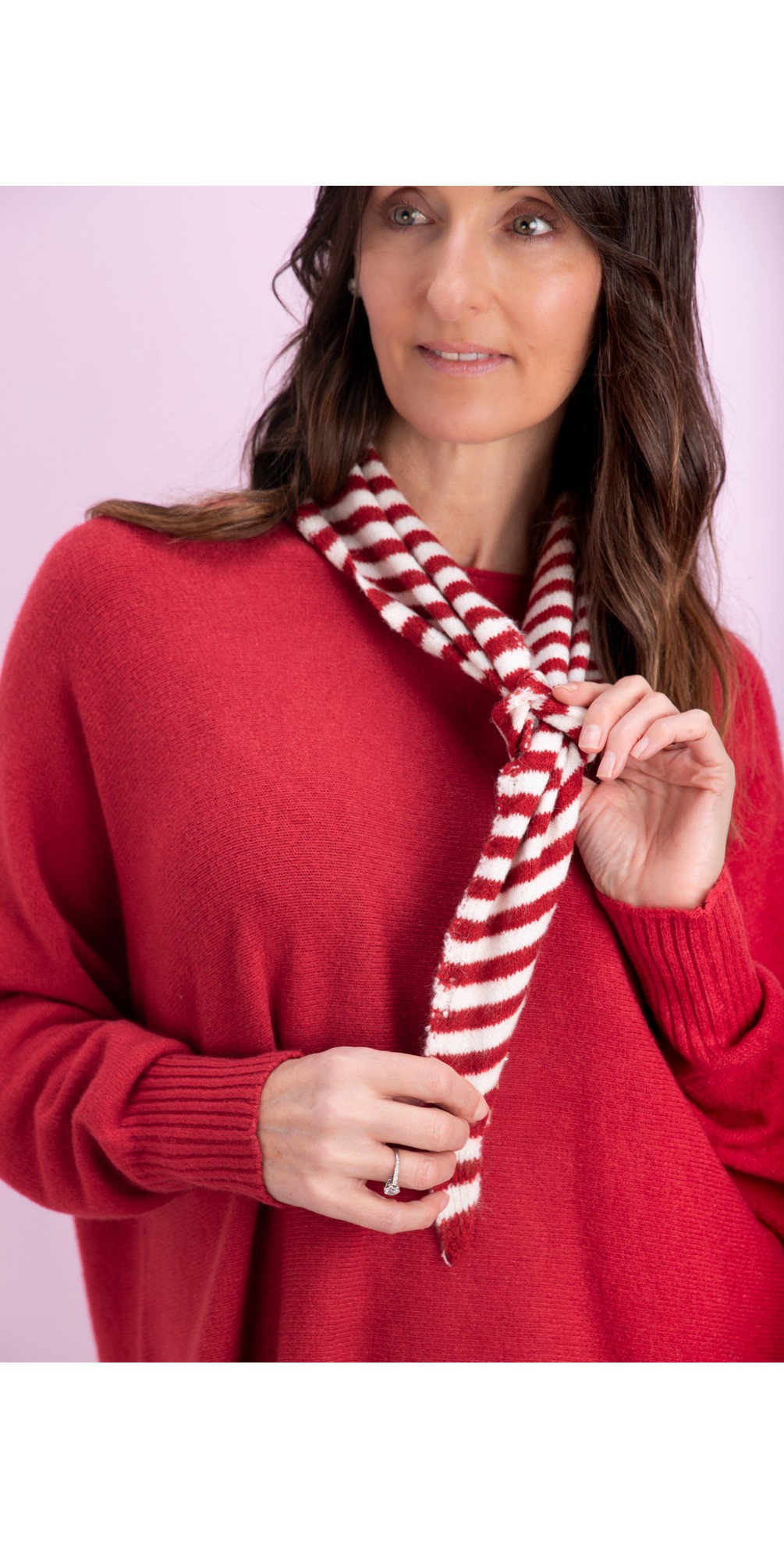 Gemini Label Accessories Triangle Neck Red Stripe Supersoft Wool Scarf