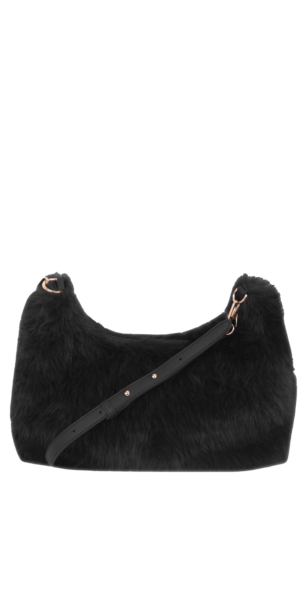 Gemini Label Bags Ayla Black Faux Fur Crossbody Bag