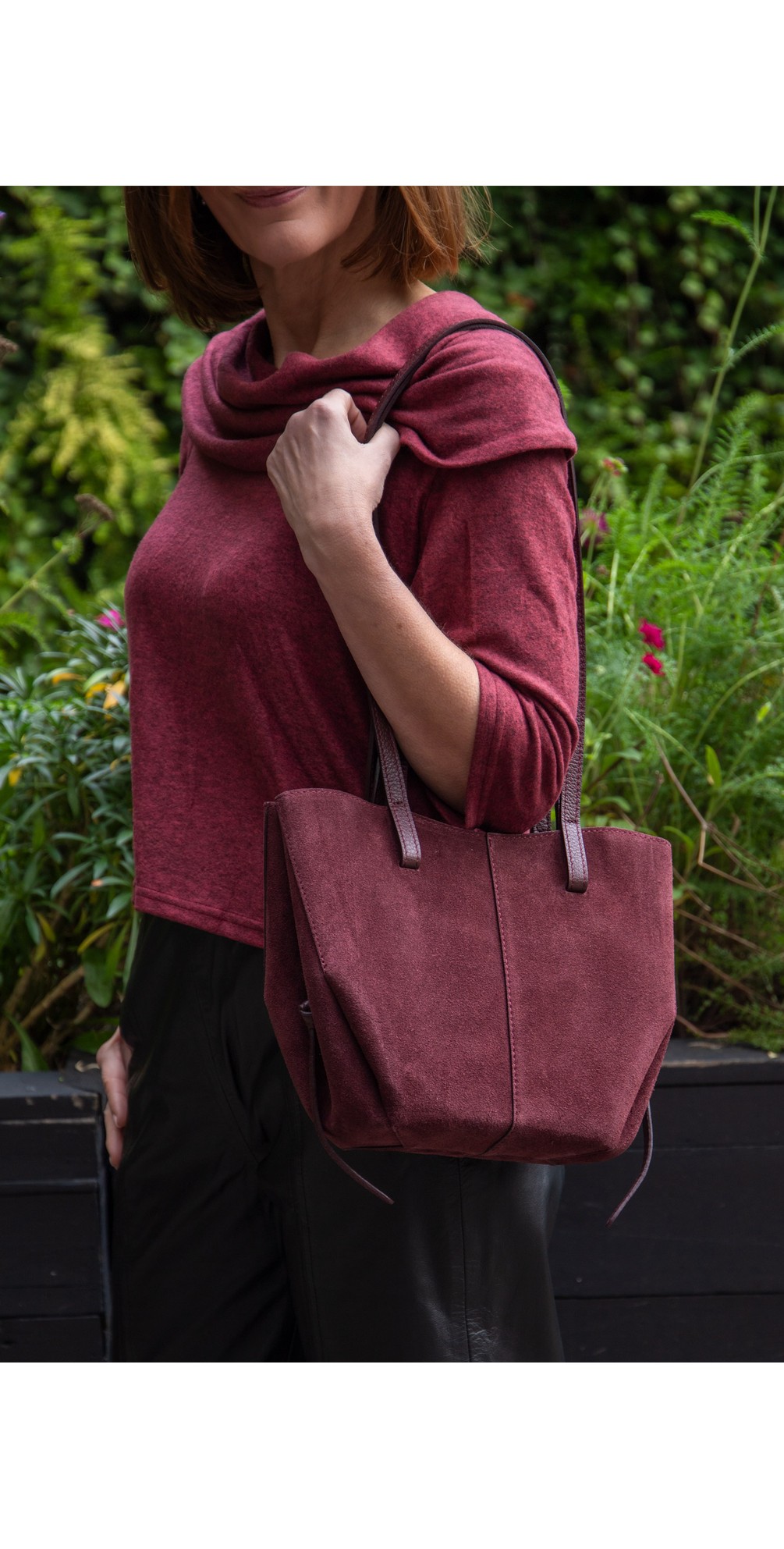 Gemini Label Bags Claudia Plum Red Suede Tote Handbag