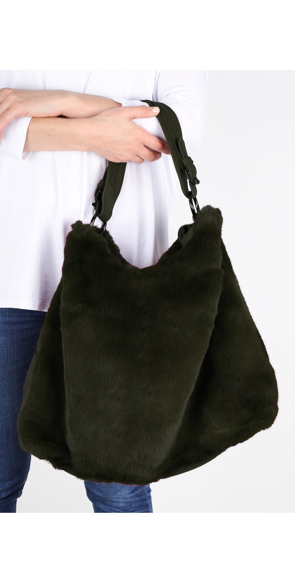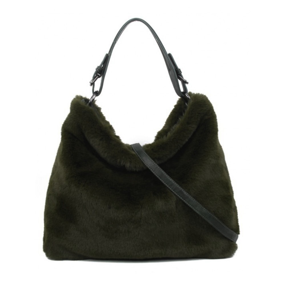 Gemini Label Bags Hebe Khaki Faux Fur Tote Bag