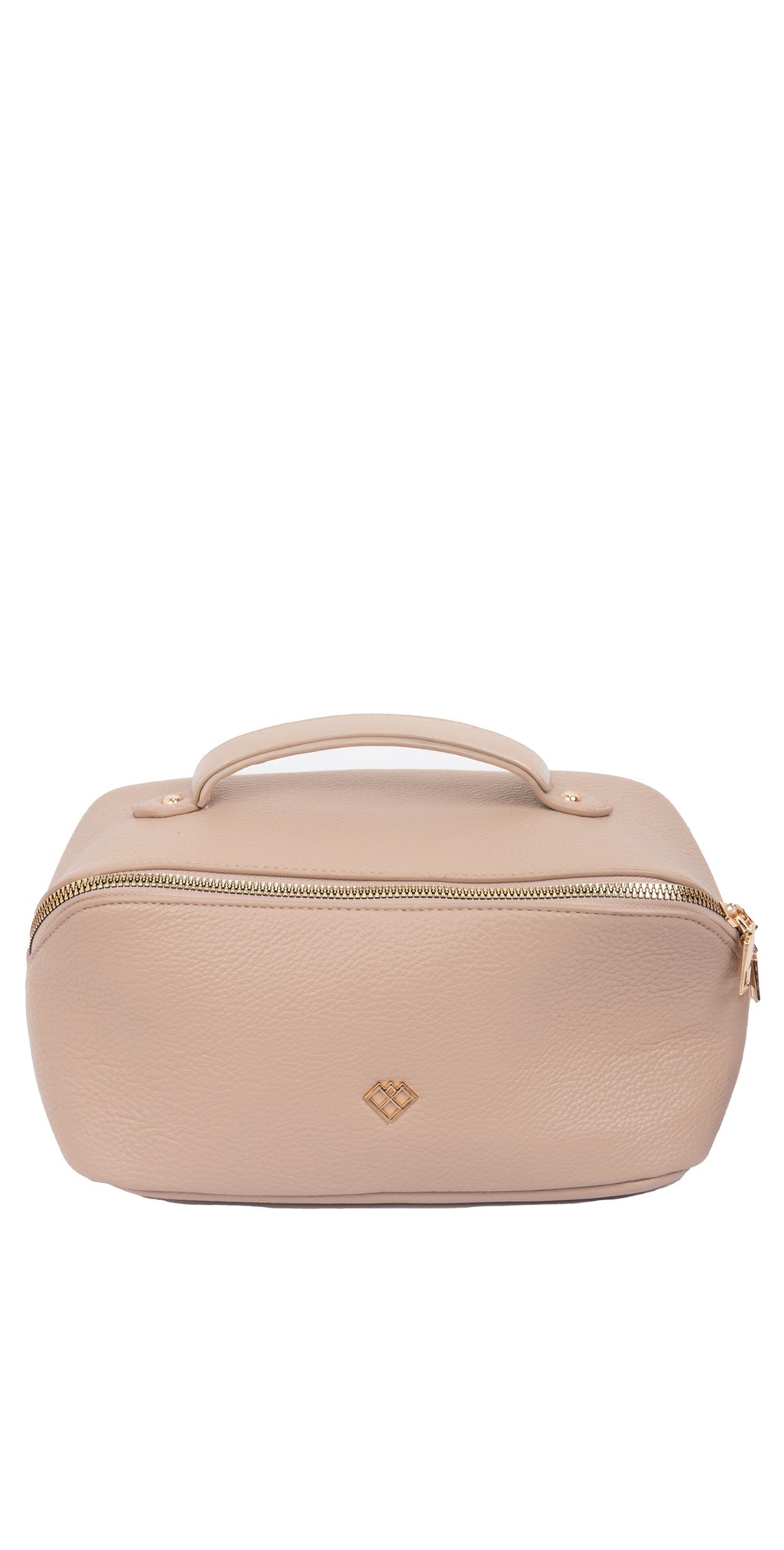 Designed with practicality and sophistication in mind, it features a sleek gold zip that opens fully to lay flat, allowing you to maximise space and easily access every product. With thoughtfully designed compartments for organisation and a sturdy handle for effortless carrying, the Mai Makeup Bag combines function and elegance in one timeless accessory.