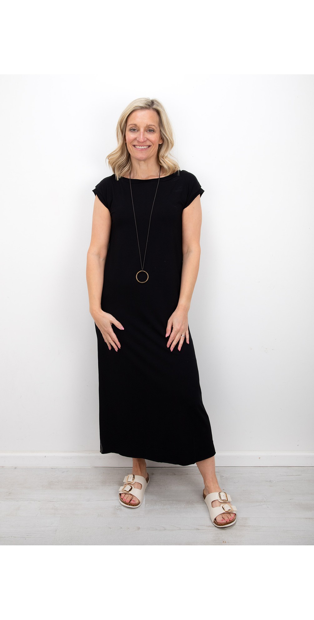 The Jersey Midi Dress with Necklace is a flattering casual dress cut to a loose fit with a straight silhouette. This classic dress is comfortable yet stylish with its simplistic design and signature necklace. Style with sandals or trainers for daytime elegance.