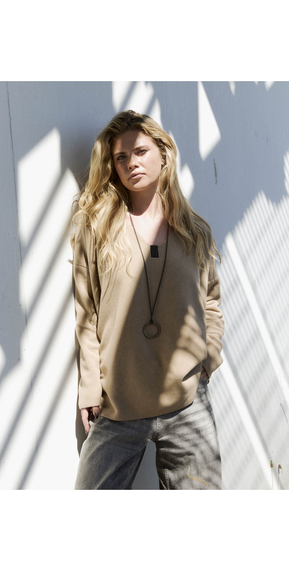 Henriette Steffensen Camel Fleece V-Neck Blouse