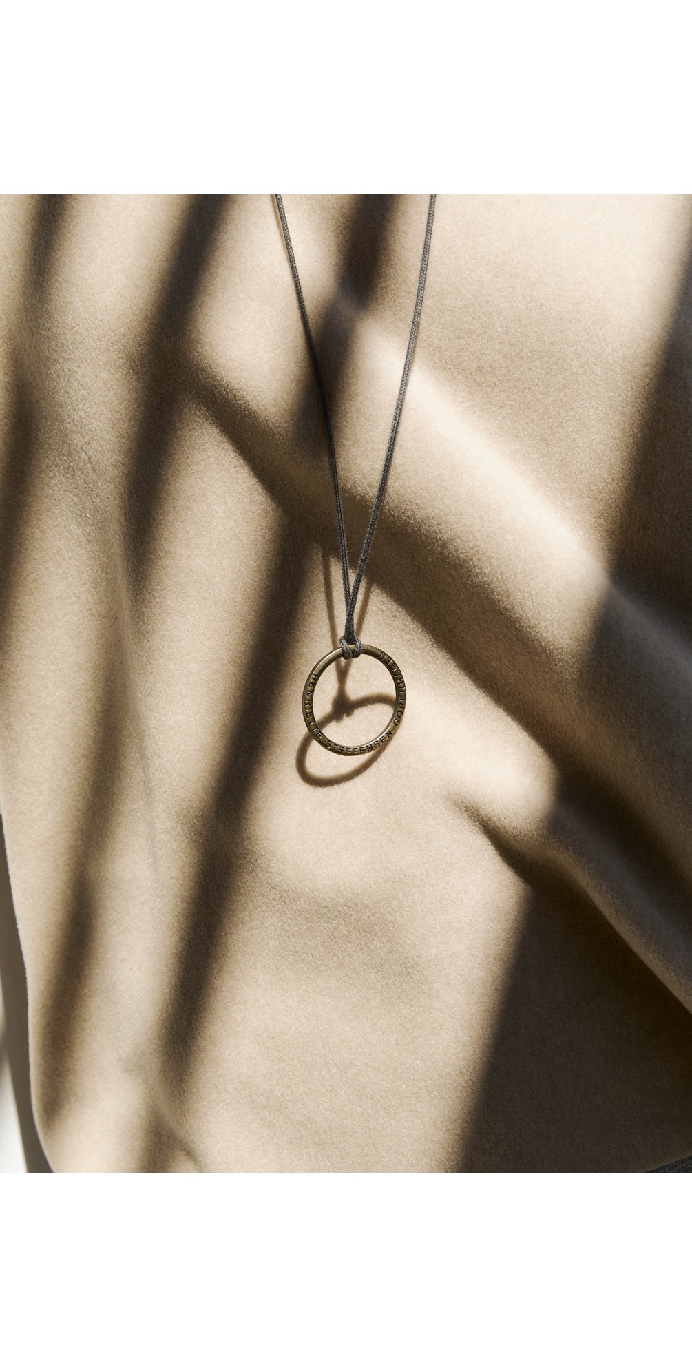 Necklace: logo metal ring in a 100% cotton string