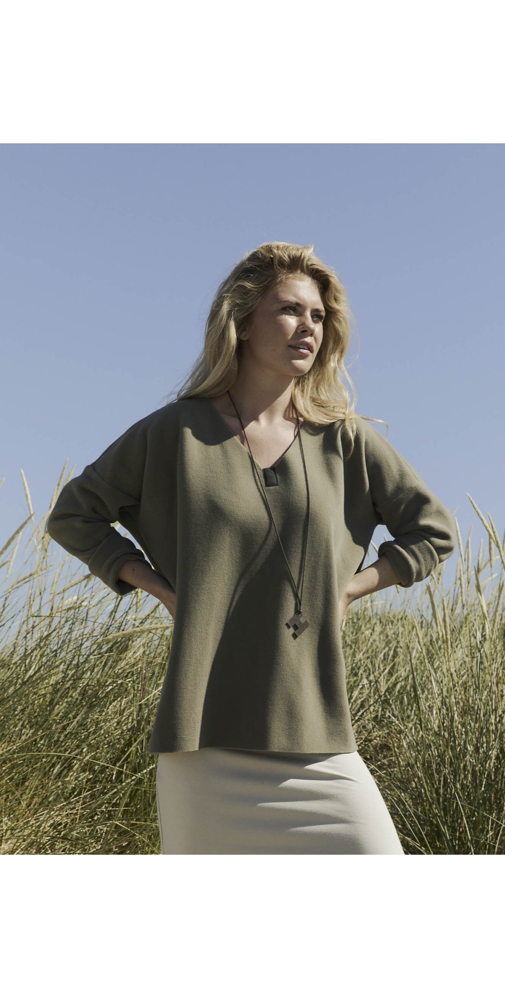 Henriette Steffensen Dusty Green Fleece V-Neck Blouse