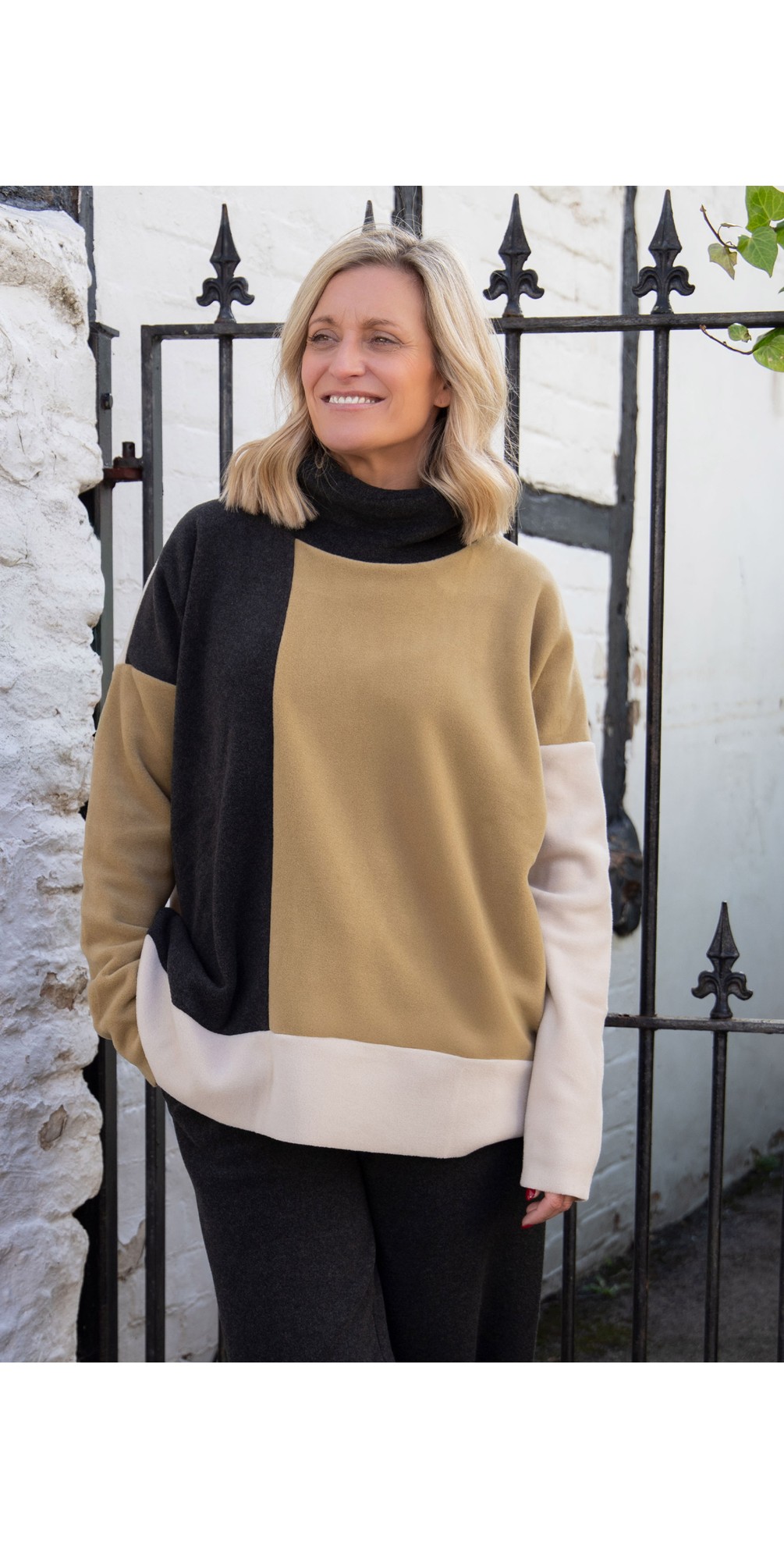 The High Neck Patch Fleece Sweater from Henriette Steffensen is a colour-block fleece jumper in their signature cosy fleece fabric. Boasting a high neckline, boxy silhouette and long sleeves with side slits, this jumper provides an effortless and unique look. Layer over trousers, skirts or jeans this season.