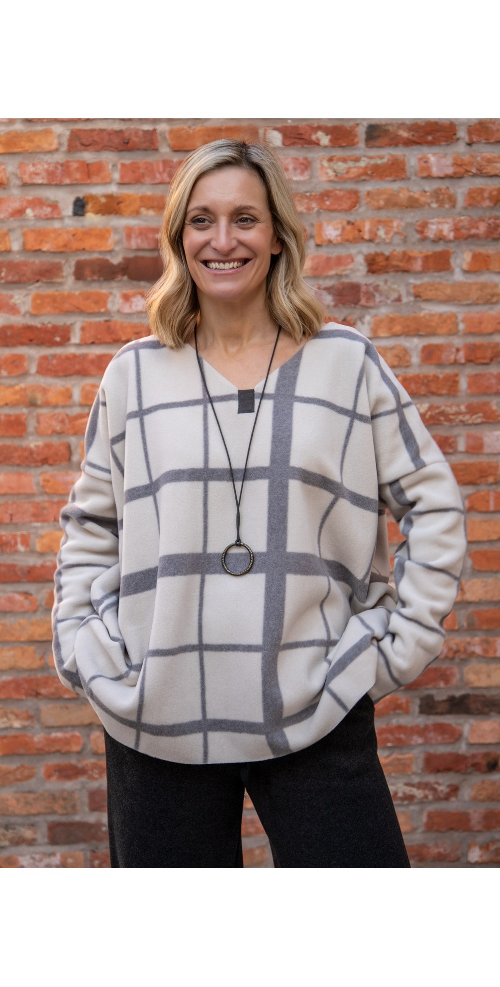 Henriette Steffensen Oversized Clan Print Fleece Blouse with Necklace