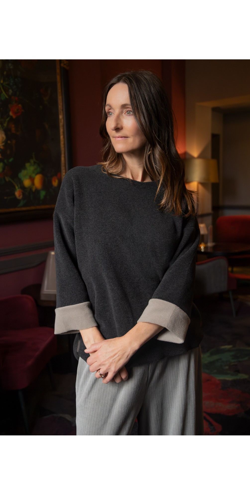 Henriette Steffensen Soft Black/ Elephant Contrast Fleece Blouse