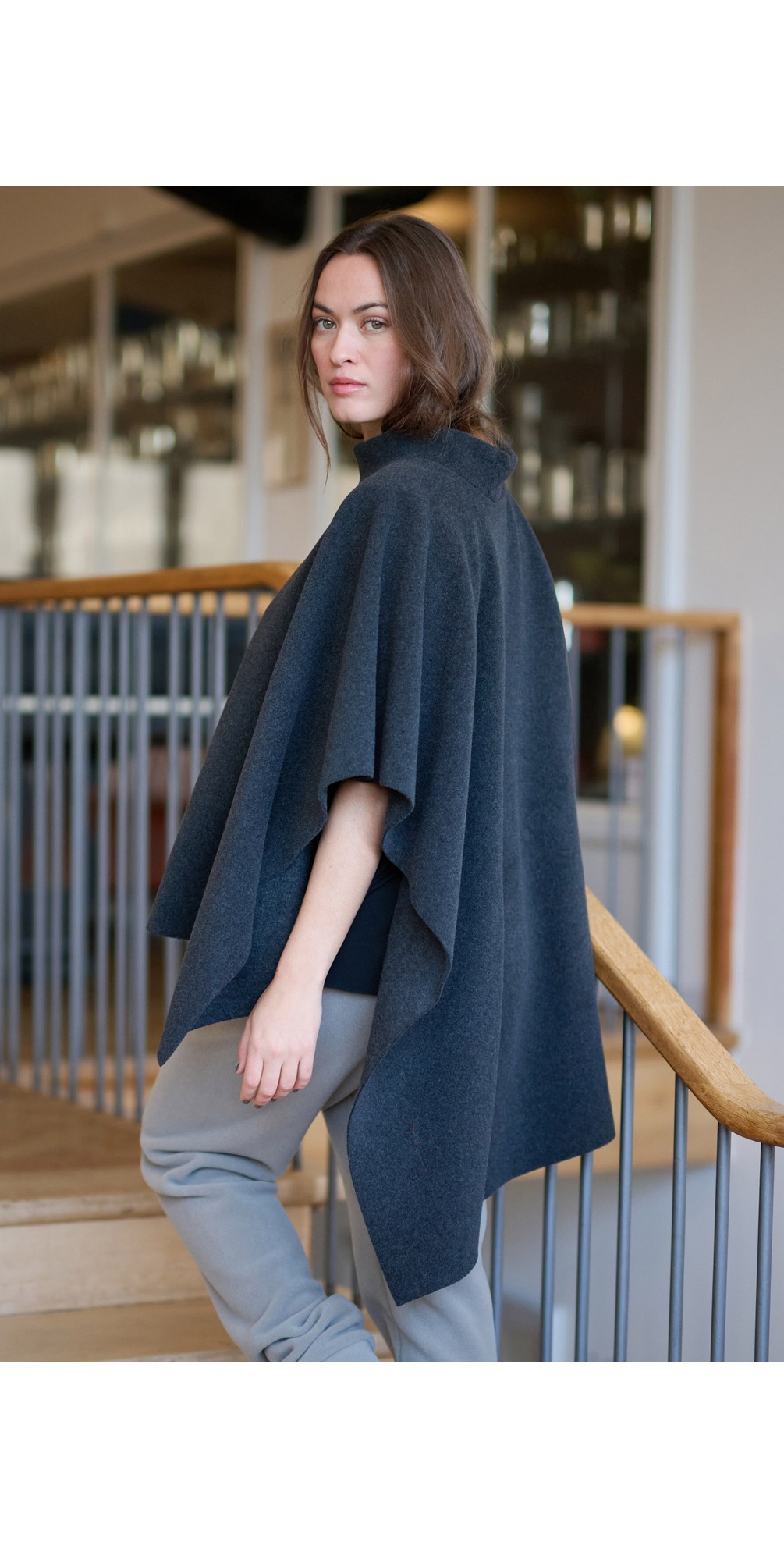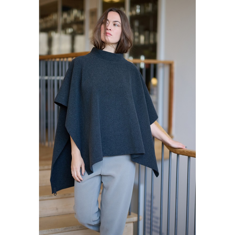 Henriette Steffensen Soft Black High Neck Fleece Poncho