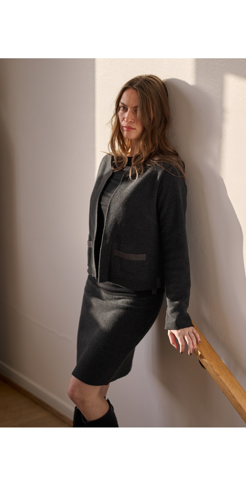 Introducing Henriette Steffensen's versatile knee-length short fleece skirt with multiple styling options. This skirt is crafted in their soft and comfortable signature fleece with a simple pull-on design. Style it with boots and a sweater for a cosy and relaxed everyday look, or a pullover and heels for formal occasions.