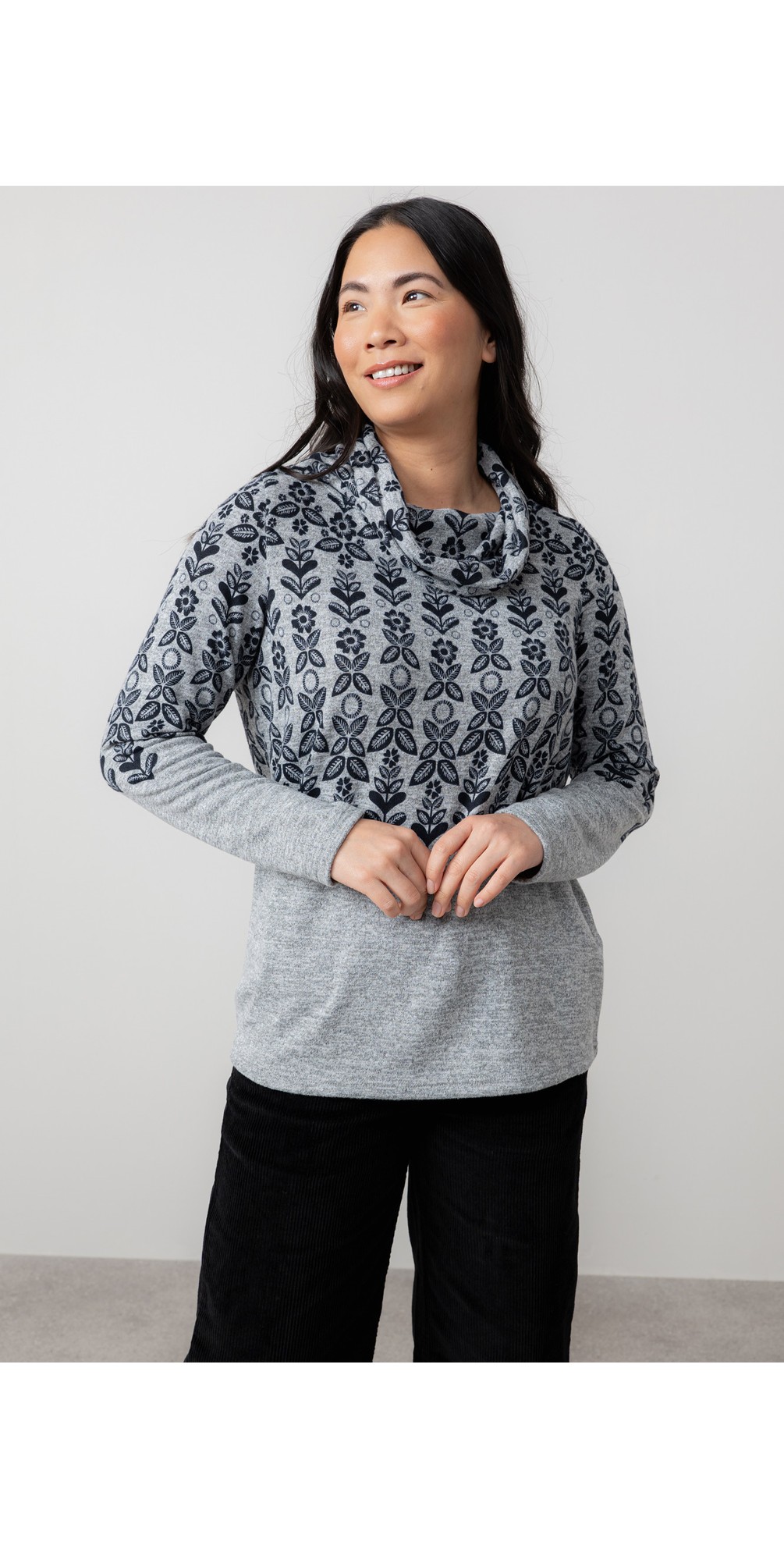 Introducing from Lily & Me, the Relaxed Everyday Cowl Neck Jumper. Made from recycled brushed polyester for a warm hand-feel and a touch of elastane to give stretch. Featuring a bold mono, inspired by a blend of Fair Isle and traditional folk print. Pair with denim or cord, the Everyday Cowl Neck is warm but lightweight, perfect for layering in the colder months.