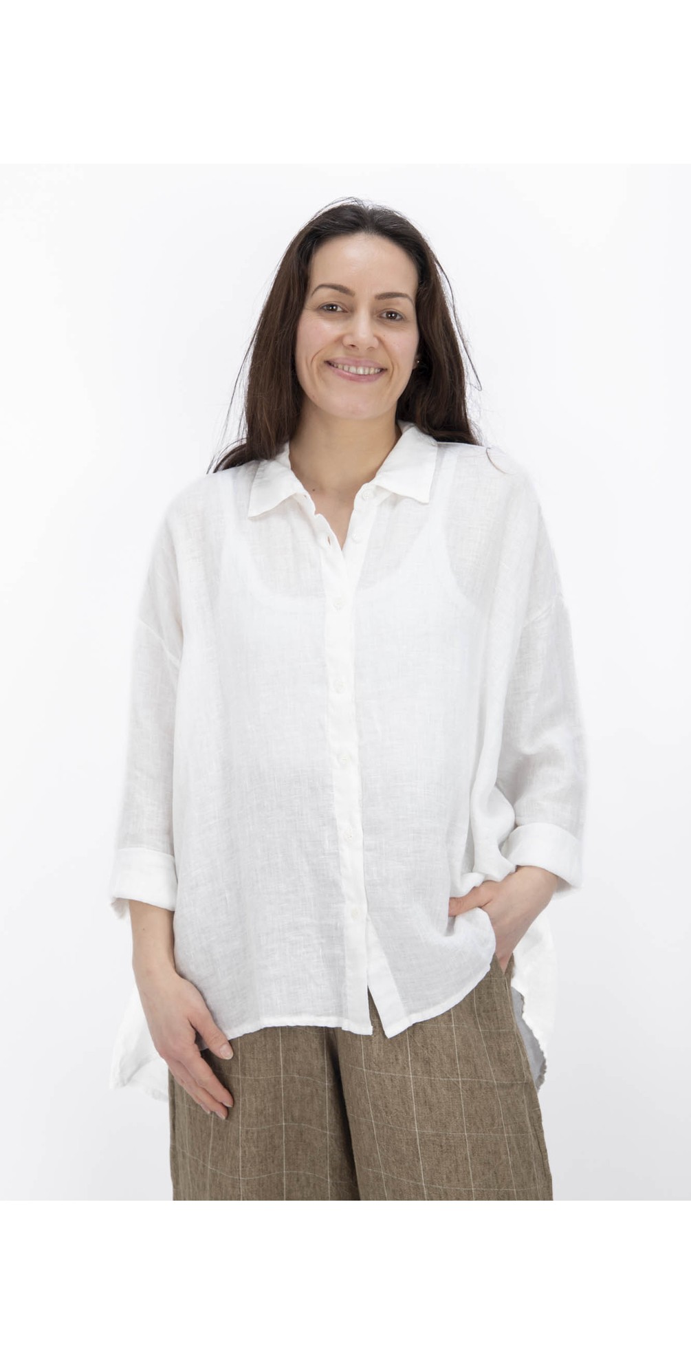 Effortlessly relaxed with refined Italian flair, the Mama B Accesa L Oversized Button Shirt is a wardrobe essential that balances comfort with contemporary style. Designed in a generous oversized silhouette with a classic collar and button-through front, it offers a laid-back yet polished look that works beautifully with trousers, skirts or denim. The soft, breathable fabric and dropped shoulders enhance the relaxed feel, while thoughtful tailoring keeps the shape modern and wearable. Perfect as a standalone piece or layered over tees and knitwear, this shirt brings effortless sophistication to everyday outfits.