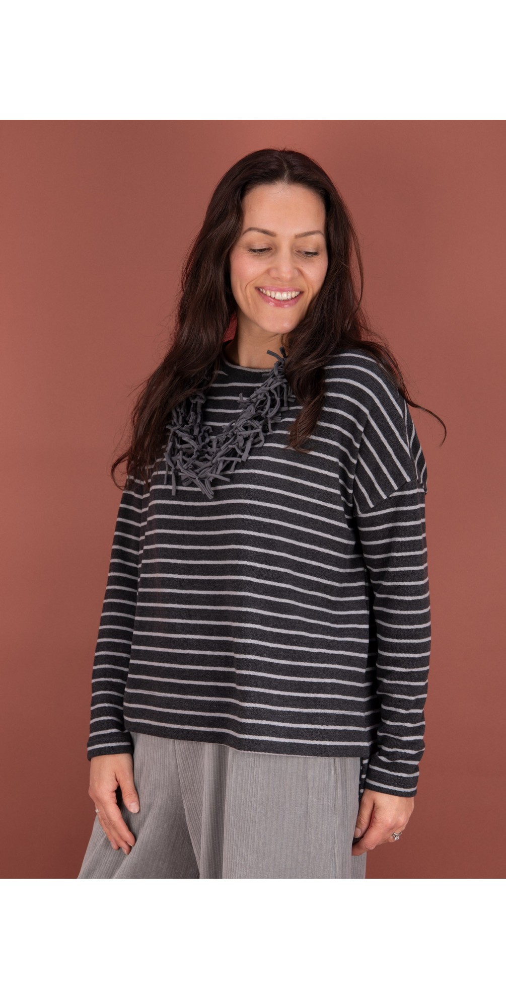 Mama B Alison R Riga Antracite Stripe Fleece Jumper