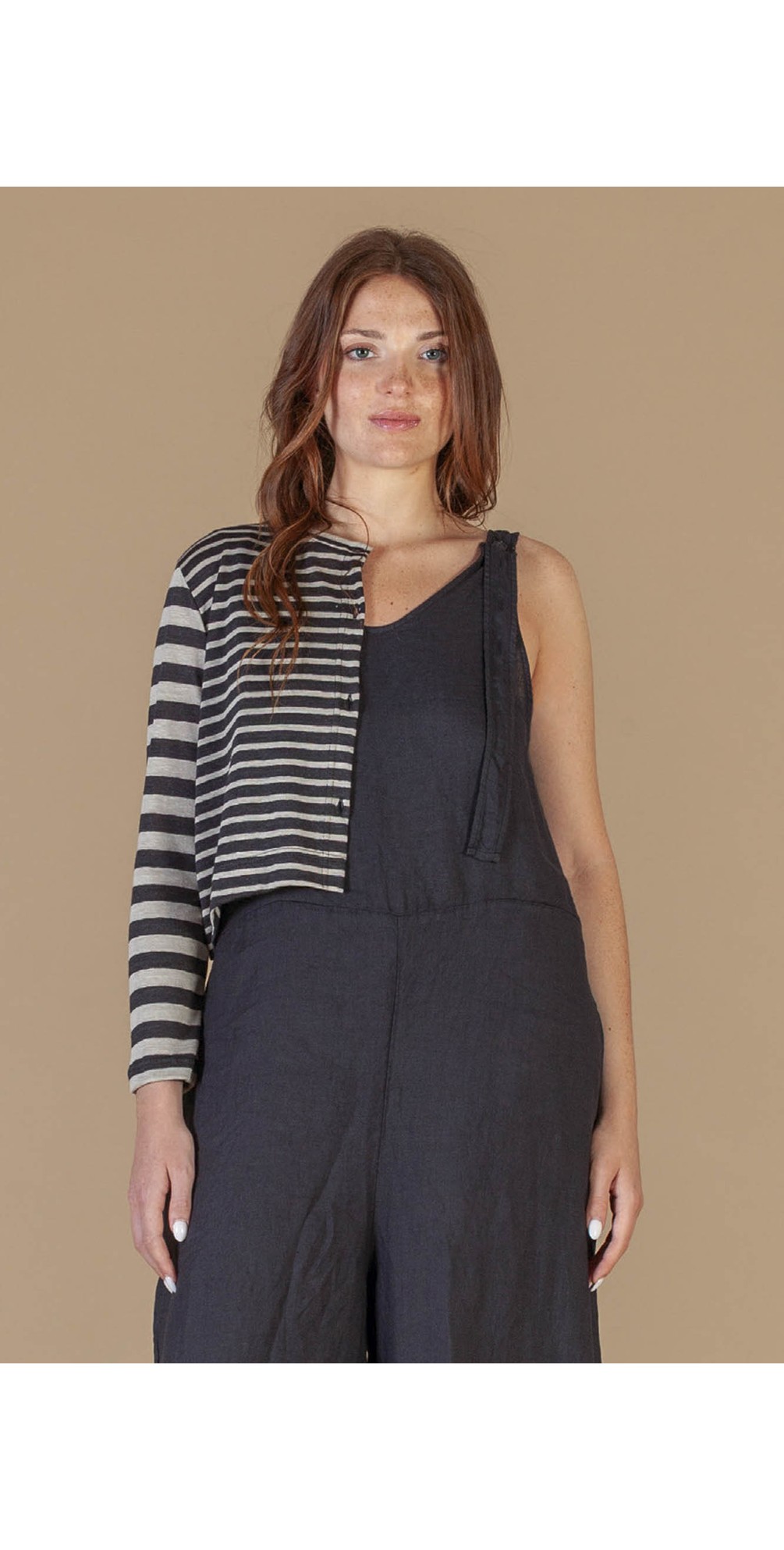 The Cie Stripe Knit Crop Cardigan by Mama B is an effortlessly stylish women’s knit designed for relaxed, contemporary dressing. Featuring an abstract stripe design, this standout piece reflects Mama B’s signature blend of artistic detail and modern Italian craftsmanship.