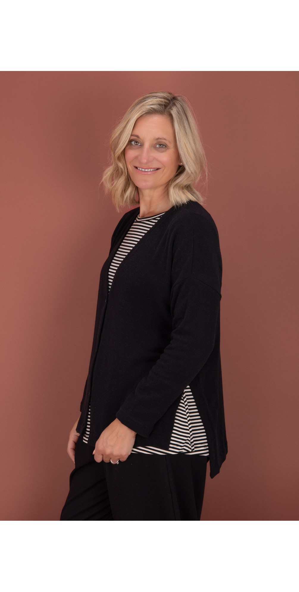 The Cosmico Swingy Cardigan from Mama B is an elevated basic, perfect for the season ahead. Featuring full-length sleeves, a V-neckline, side splits, and button fastenings to create a cardigan with a modern twist. Style it with your go-to Mama B trousers.