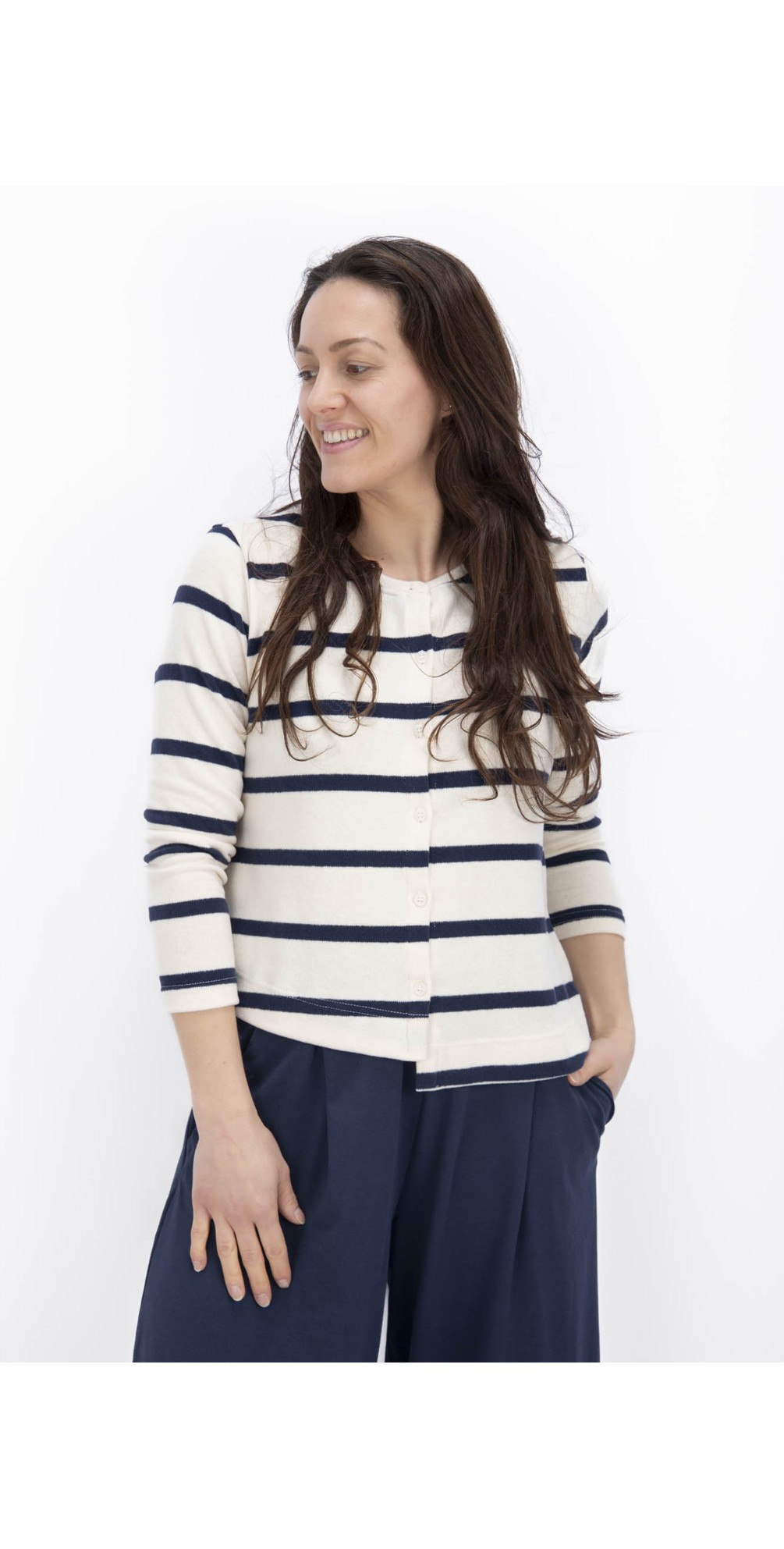 Mama B Crema M Blu Stripe Fleece Cardigan