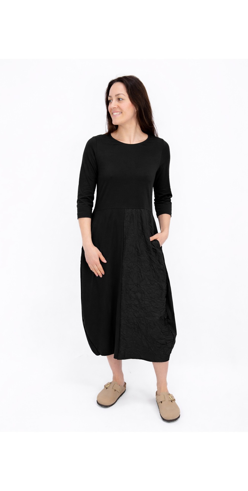 The Denso Contrast Crush Dress by Mama B is a modern, statement piece that combines artistic design with everyday comfort. Showcasing the brand’s signature Italian aesthetic, it blends relaxed styling with thoughtful detailing for an effortlessly elevated look.