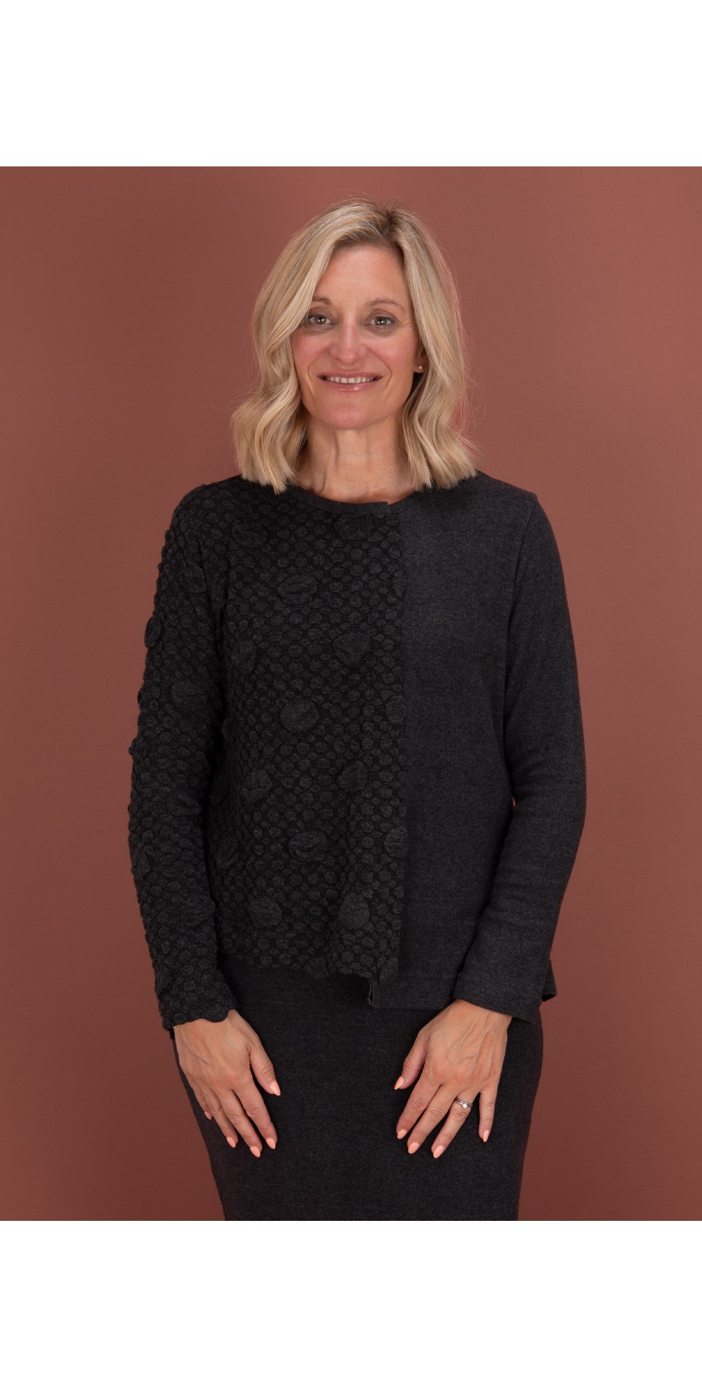 New for this year is  the Deva Oversize Insert Knit Top from Mama B. Featuring a round neck, a contrast in material textures and aa stepped hem to create a uniwue jumper. Style it with Mama B trousers for the ultimate look and pair with the matching scarf!