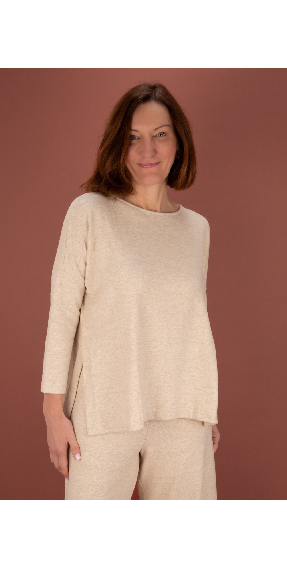 Mama B's Emotiva Oversize Eco Fleece Jumper is designed with a boat neckline, bracelet-length sleeves with dropped shoulder seam and an oversized boxy silhouette that adds to the relaxed aesthetic. Style yours with everything from Mama B's signature Bianco Trouser to wide-leg jeans.