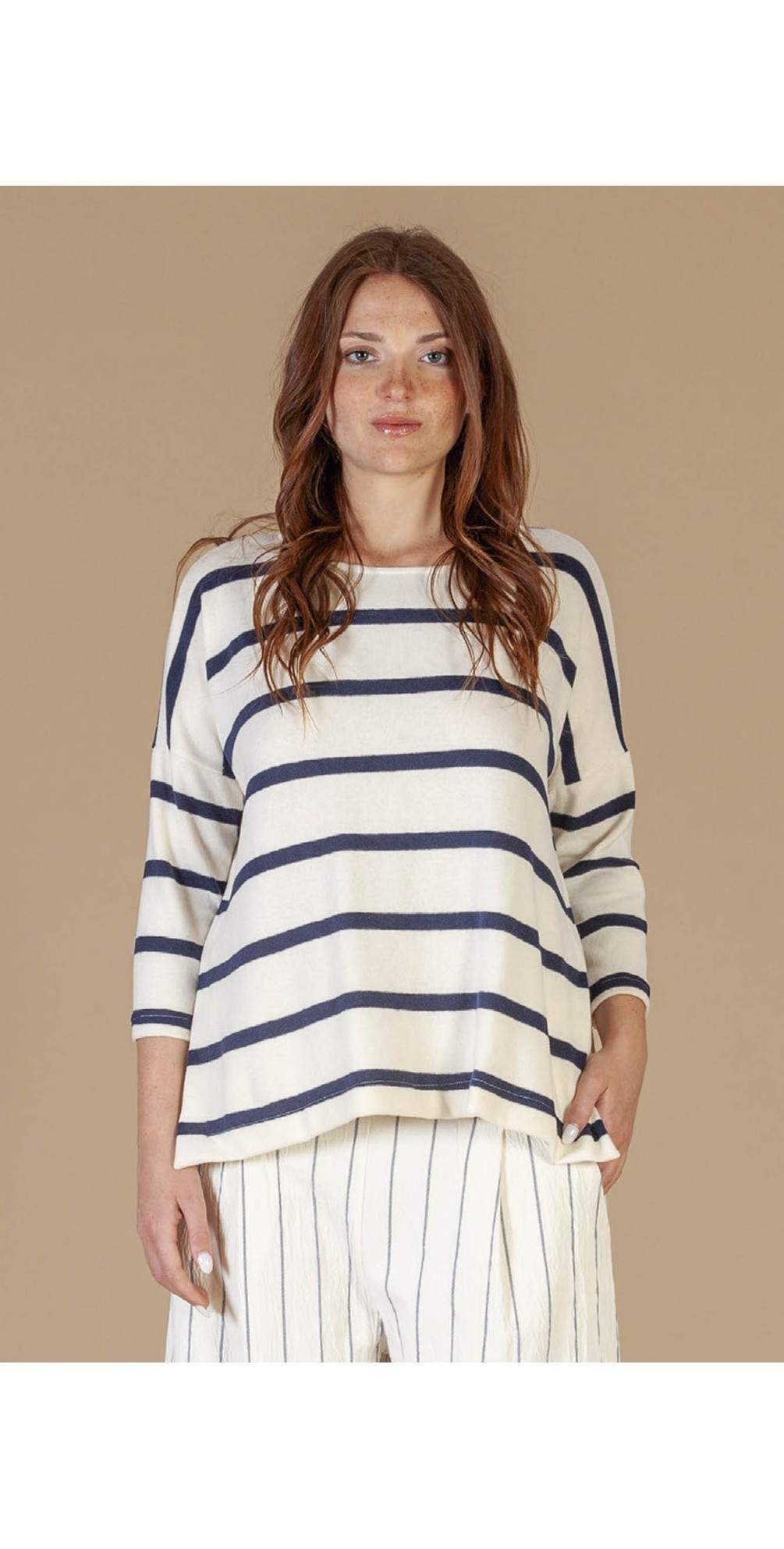 Mama B Emotiva R Blu Relaxed Stripe Eco Fleece Jumper