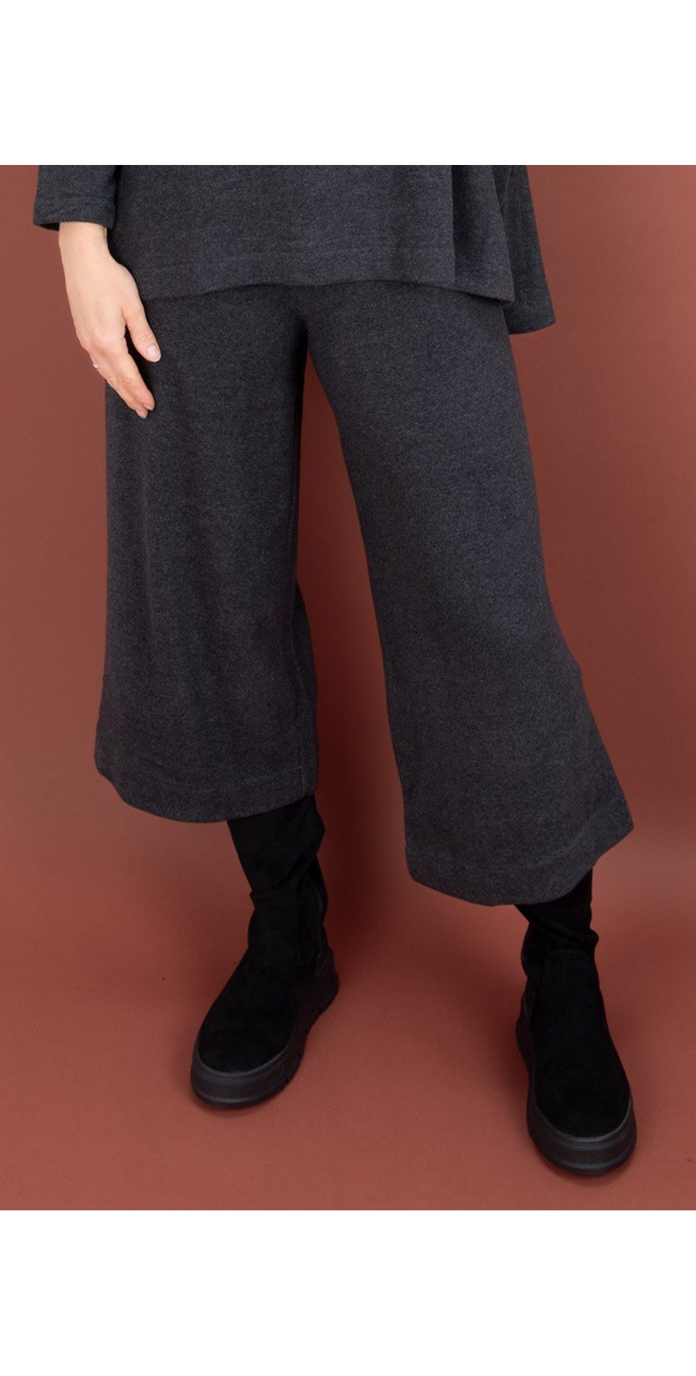 Slip into these fleece trousers to take on the season in both comfort and style. The Giba Plain Fleece Trouser by Mama B is a soft fleece trouser with a wide leg cropped silhouette, and a stretchy elasticated waistband. Pair with a matching fleece jumper from the new Mama B collection.