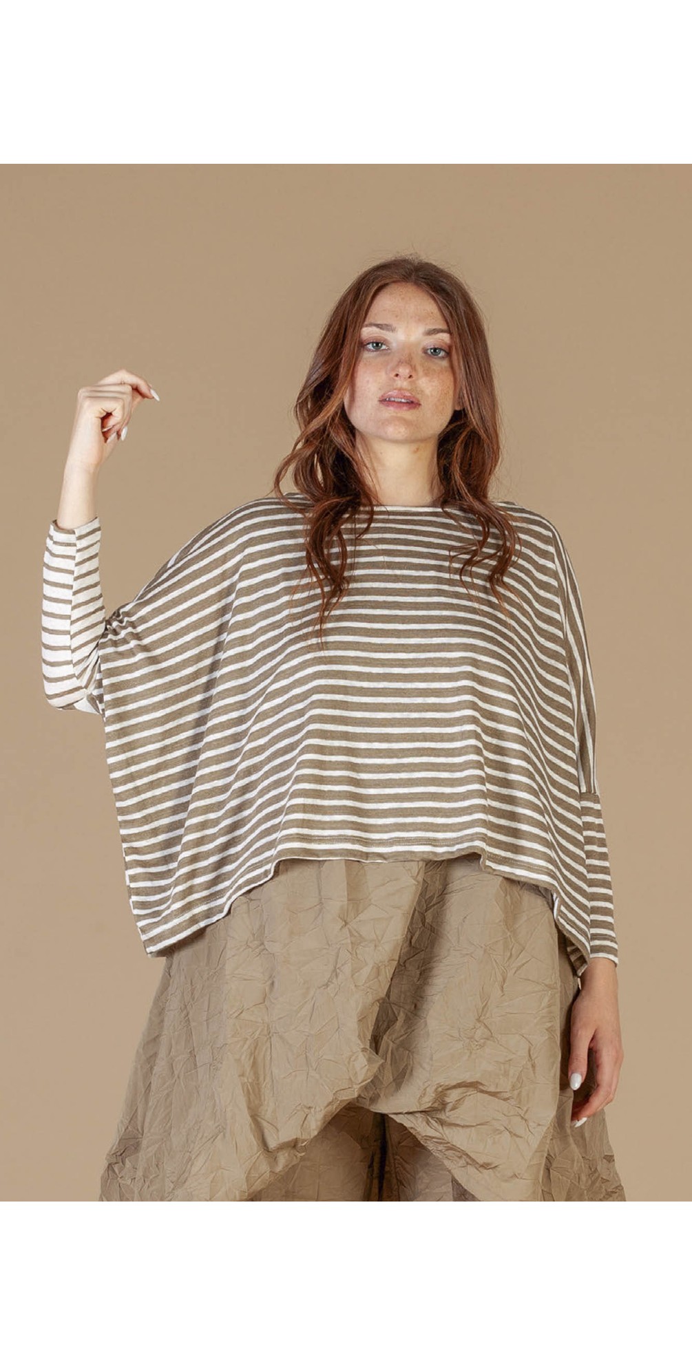The Ki Cropped Stripe Knit Top by Mama B is a modern, relaxed piece that combines effortless comfort with the brand’s signature artistic style. Designed with a contemporary cropped silhouette, it brings a fresh, easy feel to everyday dressing.